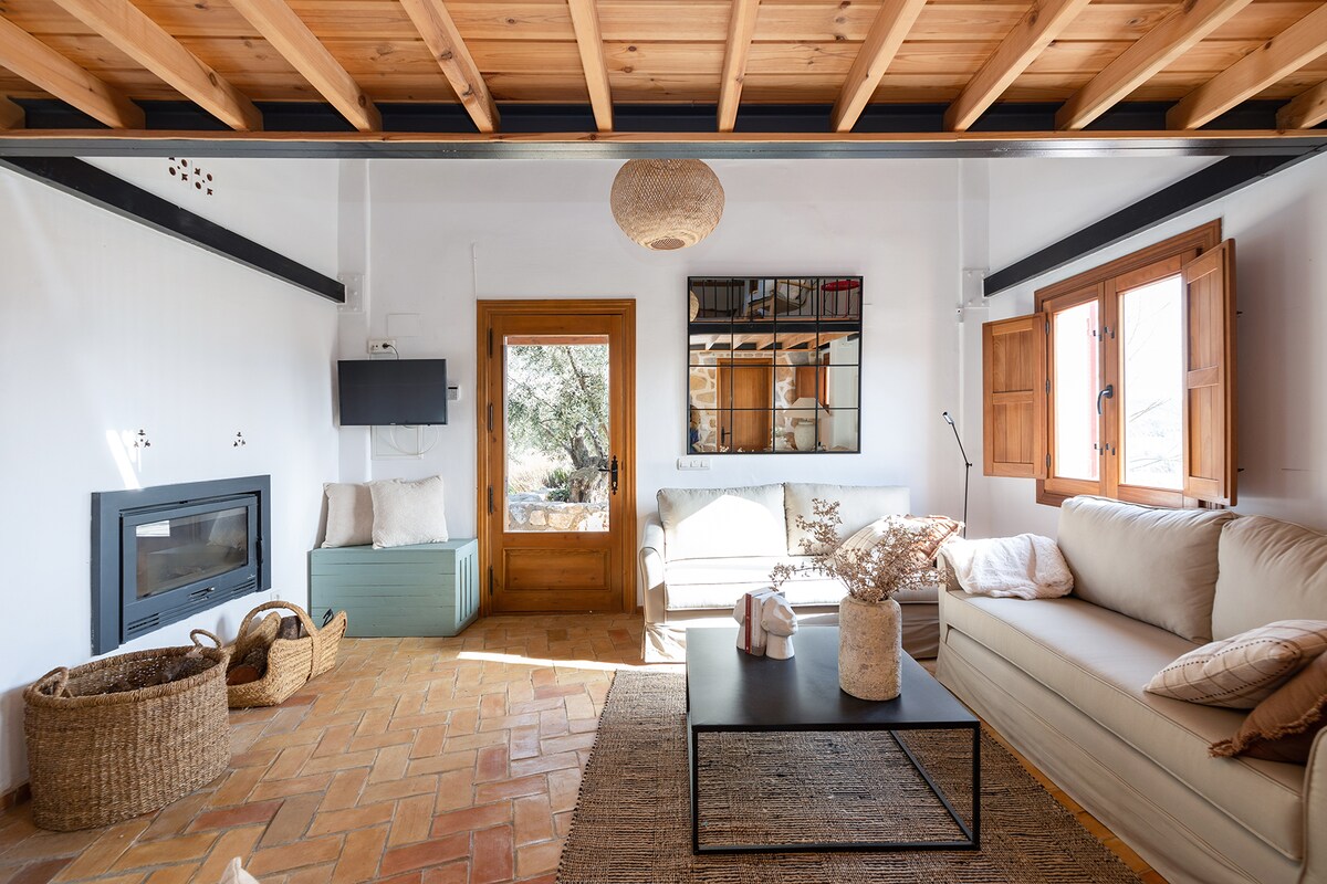 READ FULL DESCRIPTION. Wake up to views of the Sierra Nevada Mountains and the Lecrín Valley from your private terrace. This suite is located on the top floor of our farmhouse, with separate entrance. The suite is designed for your maximum comfort, with a bedroom with a 180x190 cm double bed, a private bathroom with a shower, a private living-dining room with a sofa bed, and a kitchenette (for storing and heating food). It is equipped with underfloor heating and ceiling fans.
