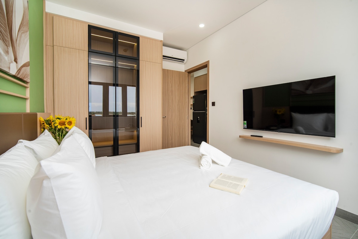 1 Bedroom Apartment in the heart of Nam Hoi An Riverside Village with Park View and small Balcony (26m2) 𝗟𝗼𝗰𝗮𝘁𝗶𝗼𝗻 - Inside Nam Hoi An Riverside Village (see below) - 15 minutes from Hoi An Ancient Town - 40 minutes from Da Nang and Airport 𝗪𝗵𝗮𝘁 𝗶𝘀 𝗶𝗻𝗰𝗹𝘂𝗱𝗲𝗱 - Free Parking - Free Wifi - Safety - Cleaning - Free Pool - Free Bike rental - Access to Nam Hoi An services