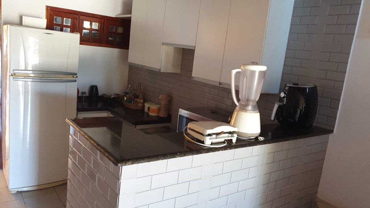 O chalé dispõe de quarto térreo com cama de casal, ar split; banheiro social; 1 suite na parte superior com cama de casal, frigobar, tv e ar split; mezanino com cama de casal, 2 camas de solteiro e ar split. A cozinha tem todos os utensílios domésticos, liquidificador, air fry, geladeira, freezer, sanduicheira, fogão; gelágua Churrasqueira privativa dentro de casa, chuveirão, máquina de lavar( tipo tanquinho). Guarda sol e cadeiras de praia, toalhas, lençóis, mantas.