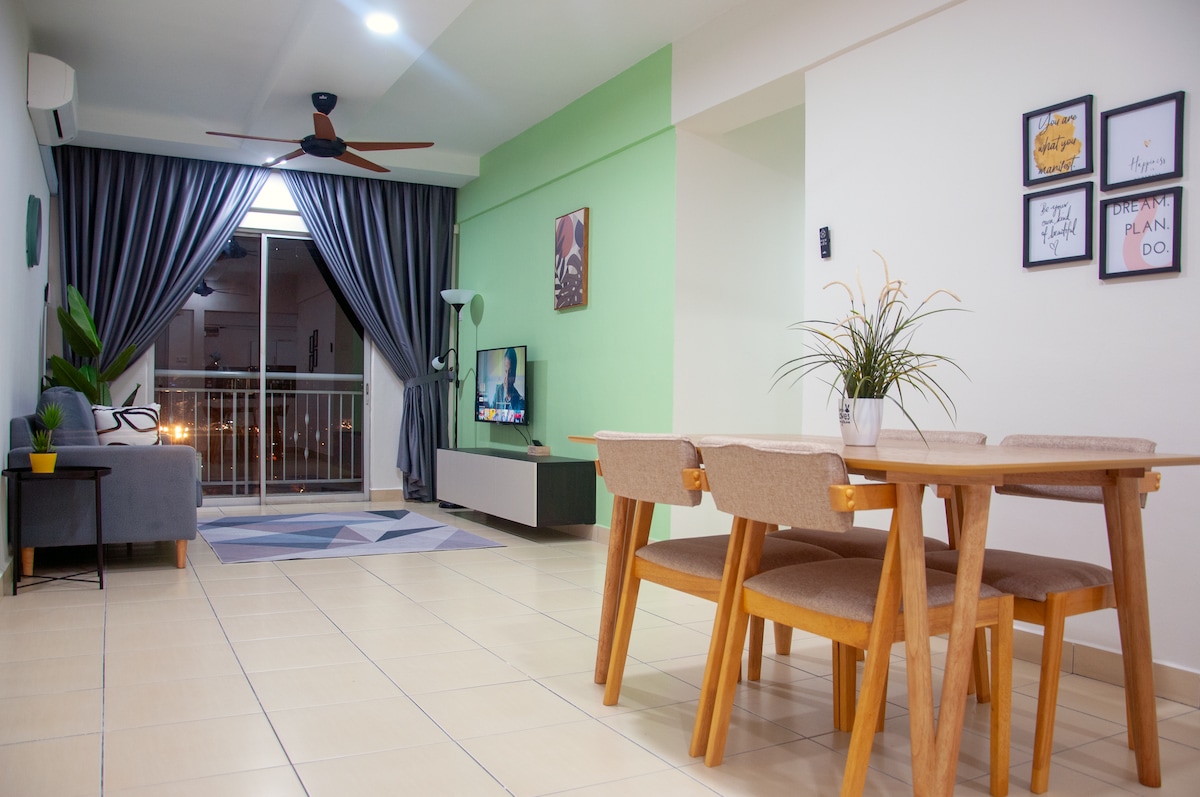 Przytulny, wygodny i przestronny apartament. Apartament znajduje się na 20. piętrze, oferując wspaniałe widoki na miasto i góry Puchong i może pomieścić do 11 osób. Jest idealne dla osób podróżujących służbowo, rodzin i rodziców, którzy chcą spędzić czas ze swoimi pociechami. Dogodnie położony w samym sercu Puchong, zapewnia łatwy dostęp do restauracji, kina, sklepów spożywczych, LRT, IOI Mall, Sunway Pyramid, Sunway Lagoon, Pavilion 2 Bukit Jalil, IOI City Mall i innych.