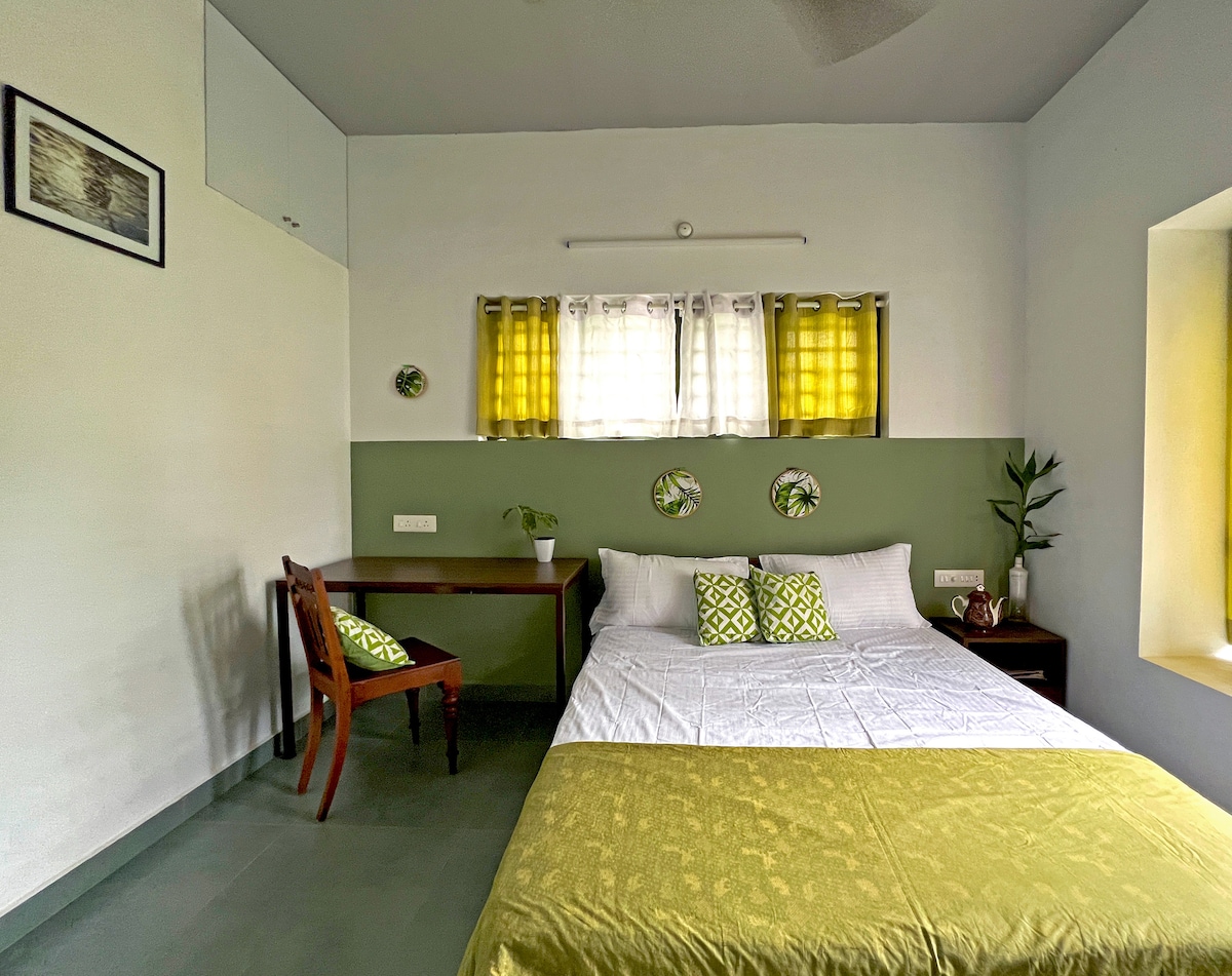 Step back in time at Verdant Heritage Bungalow. This charming colonial bungalow sits in the heart of Fort Kochi. You'll have the entire, private upper floor to yourself, complete with a luxurious master bedroom with AC, a cool spare bedroom (also with AC), and a breezy balcony. If the lone bathroom is insufficient, feel free to use the ground floor bath room. Explore all the nearby sights on foot as they are just a stroll away. We don't live here but just a quick 15-minute call away.