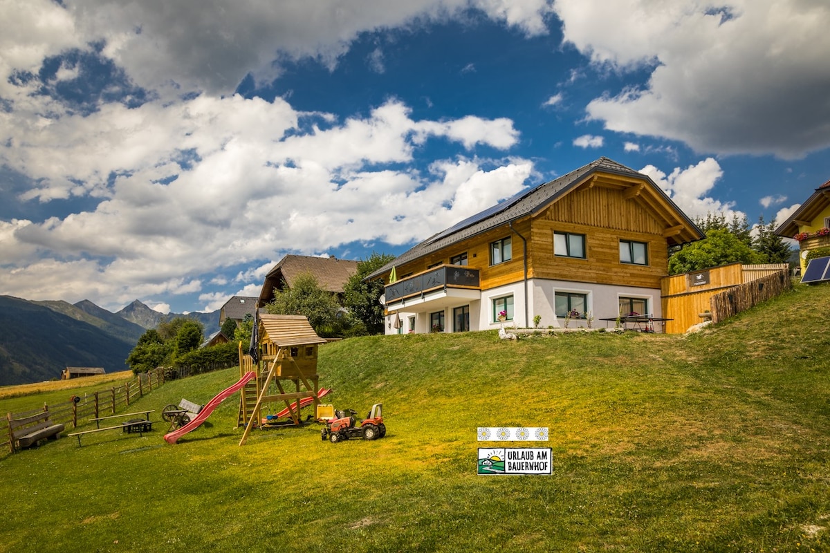 Authentic farm experience in the middle of Lungau nature, with playground and small animals to pet Become part of our farm and feel the love for cattle and agriculture. Everyone in our family, farmer Hans, farmer Marion, and the children Thomas and Maria, lives our everyday "farm" life with great heart!