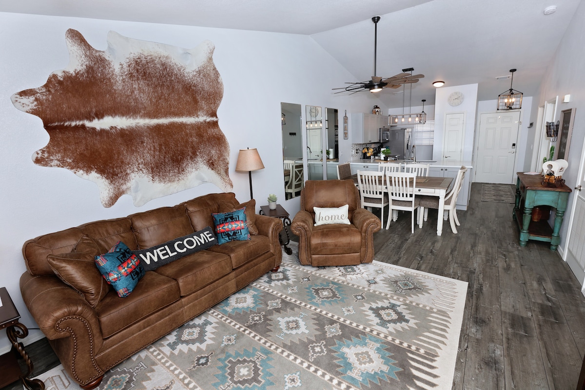 Wybierz się do Branson na relaksujące wakacje z rodziną i ciesz się niezapomnianym pobytem w tym eleganckim apartamencie na niższym poziomie w Holiday Hills Resort. Apartament z 2 sypialniami, jasnymi wnętrzami, kolorowymi akcentami i nowoczesnymi meblami, bezproblemowo łączy wygodę i styl, tworząc harmonijną przestrzeń dla Twojej grupy. Centrum miasta – 7 minut jazdy Branson Scenic Railway – 7 minut jazdy Dzielnica teatralna Branson – 17 minut jazdy Stwórz z nami niezapomniane wspomnienia w Branson i dowiedz się więcej poniżej!