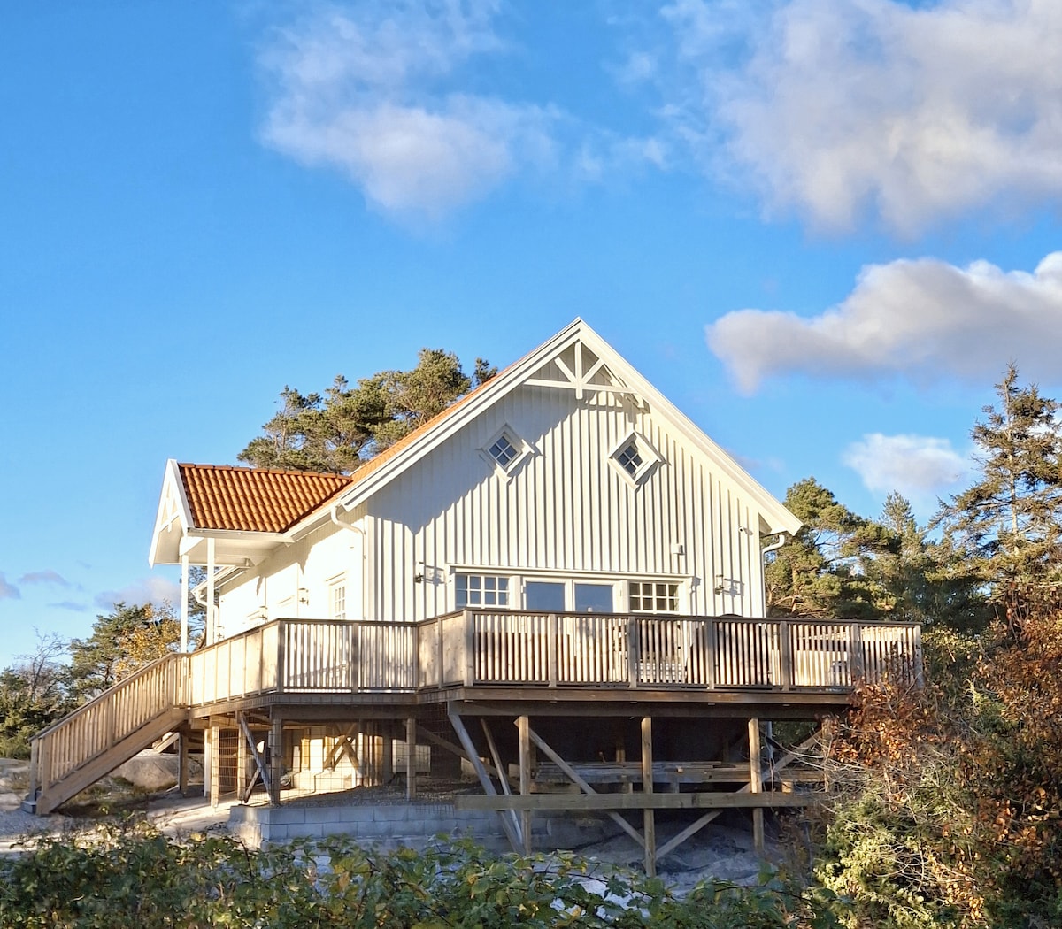 Nowo wybudowana chatka bezpośrednio przylegająca do rezerwatu przyrody Tjurpannan ze szlakami turystycznymi w pięknej okolicy. Domek znajduje się na działce przyrodniczej z klifami, ryżem jagodowym i sosnami. Z działki rozciąga się widok na rezerwat przyrody na zachodzie, a na wschodzie na pastwiska dla owiec i koni. Zaledwie kilkaset metrów dalej znajduje się kemping z restauracją, mini życiem, mini golfem i łodziami do wynajęcia. W odległości spaceru znajduje się kilka przytulnych zatok kąpielowych do wyboru. Łowienie krabów to popularna aktywność dla osób w każdym wieku