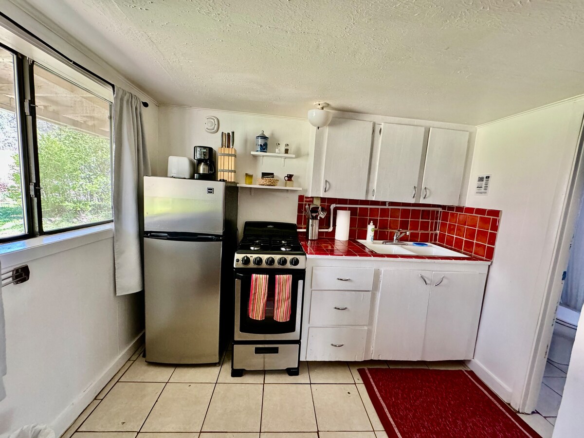 Nestled in the heart of El Prado in Taos, this newly constructed Adobe Casita offers the perfect blend of traditional charm and modern luxury. Enjoy breathtaking views of pueblo mountain from your private patio, just a short drive to vibrant Taos Plaza and nearby ski resort (25 minutes). Enjoy ample living space in this open-concept studio with all the amenities: Full Kitchen, heated floors, washer/dryer, high speed Internet, BBQ, 14 ft ceilings skylights, heated towels, fireplace, parking.
