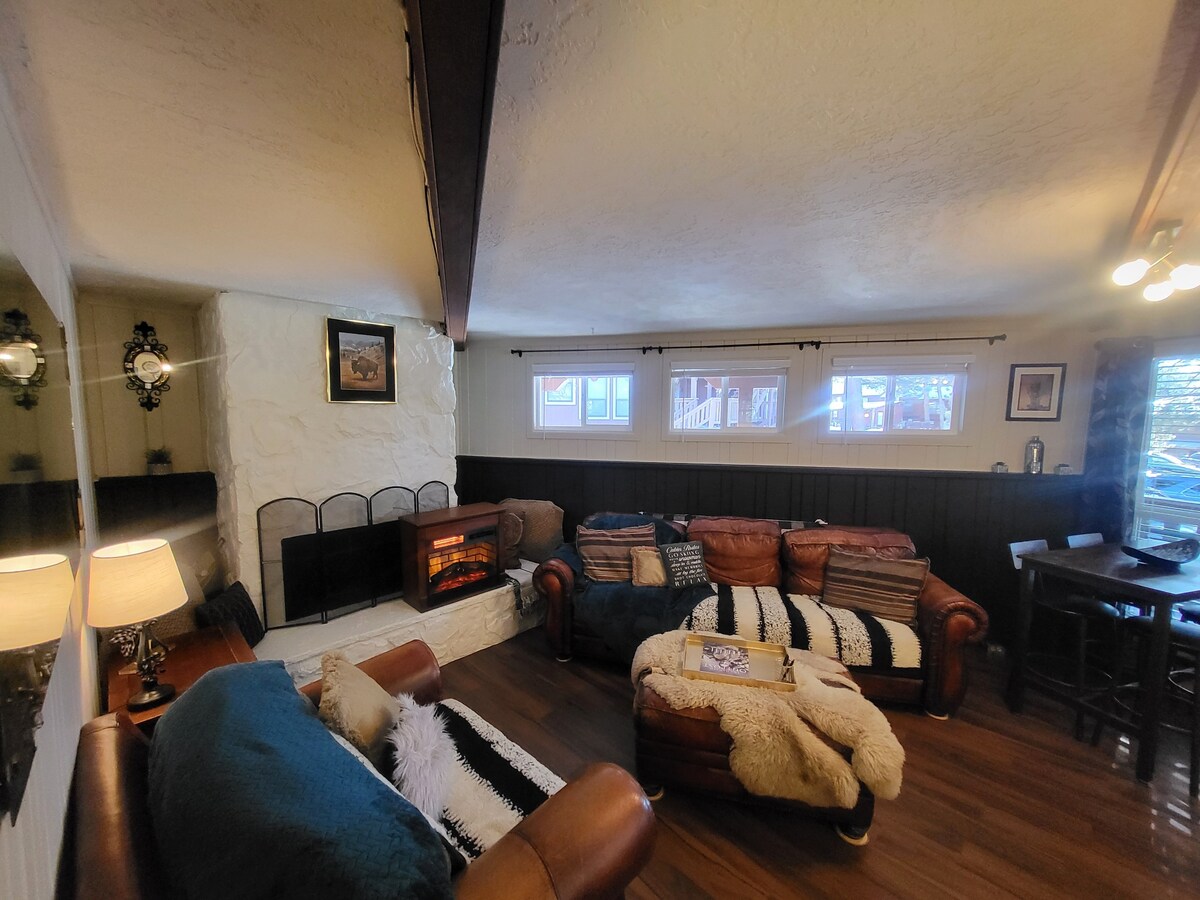 Remodeled just last year! Sure to be the coolest condo in Angel Fire! 😎 This fun rendezvous is nestled in the woods of the Pinetree Commons complex. It's only 2 blocks from the AF Resort. Close to skiing, biking, hiking, golf and more! Grab a drink and enjoy one of the 2 outdoor balconies or cozy up by the fire. The interior is fun and inviting... with eclectic murals and decor offering a different experience than anything in the area! Perfect for families/friend groups!