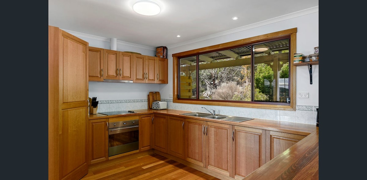 Domek położony wśród rodzimych eukaliptusów i banksji, z widokiem na czyste wody małej zatoki Norfolk. Zewnętrznie wtapia się w otoczenie, a wewnątrz znajduje się szczegółowa stolarka z dębu tasmańskiego, która nadaje mu naturalny charakter. Położony centralnie na Półwyspie Tasman, znajduje się w niewielkiej odległości od wszystkiego, co jest w ofercie. Wyposażenie: Designerska kuchnia/łazienka Wewnętrzna i zewnętrzna wanna Podwójny prysznic Gry planszowe i książki Piec na drewno Biurko/gabinet Duże łóżko (king) Palenisko Klimatyzacja Outdoor dining Grill
