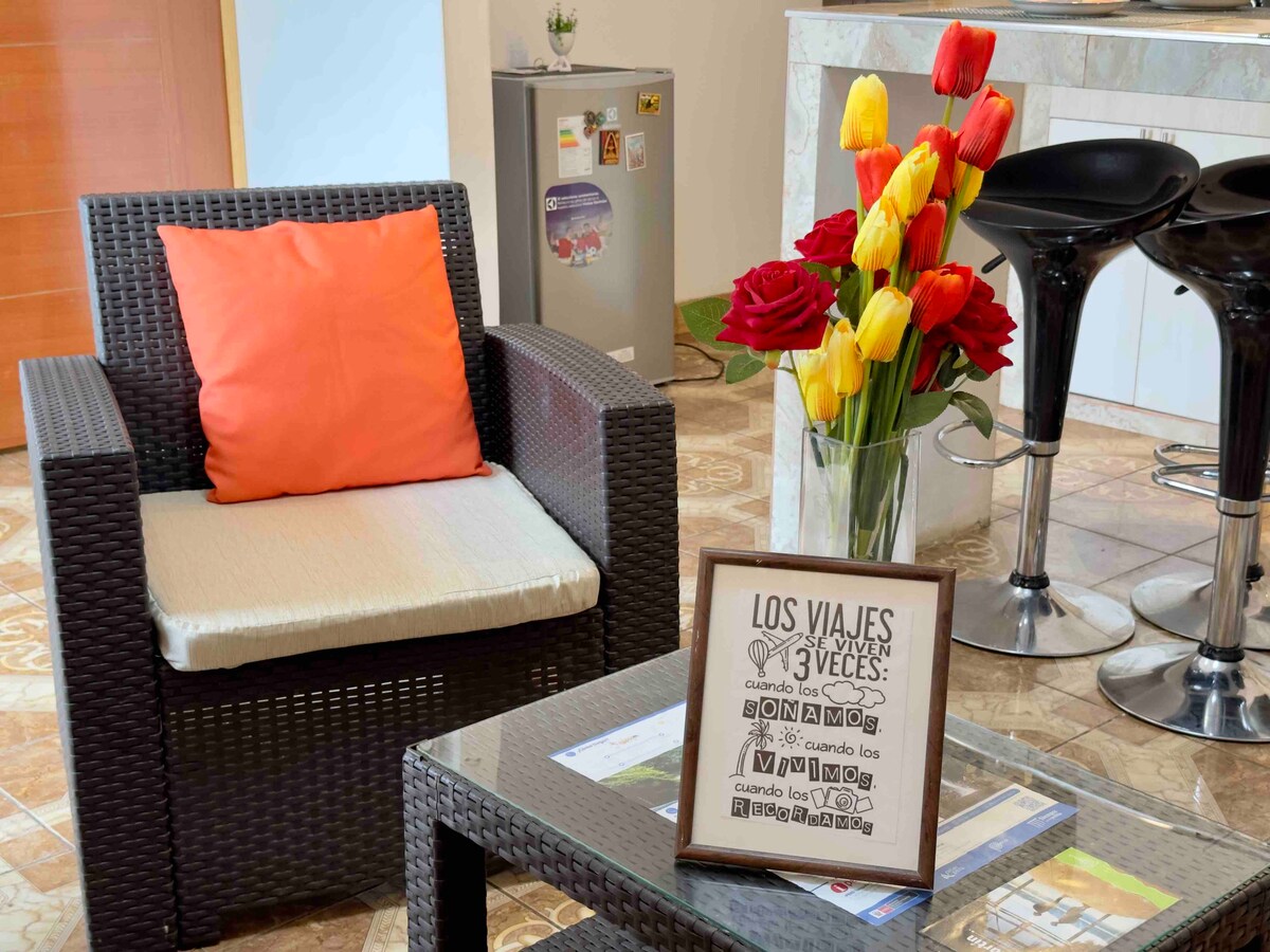 Umeblowany apartament, przytulny, czysty, bezpieczny i chłodny, z klimatyzacją, tarasem z pięknym widokiem, prywatną łazienką, położony w najlepszej dzielnicy mieszkalnej Fonavi, łatwo dostępny, z bardzo dobrą okolicą, w pobliżu zamkniętego koloseum, uniwersytetu, supermarketu Plaza Vea idealnego na wakacje lub podróże służbowe. Jesteśmy tu, aby sprawić, że poczujesz się jak w domu. Nowoczesna sceneria na trzecim piętrze, przestronna i cicha. Witaj.