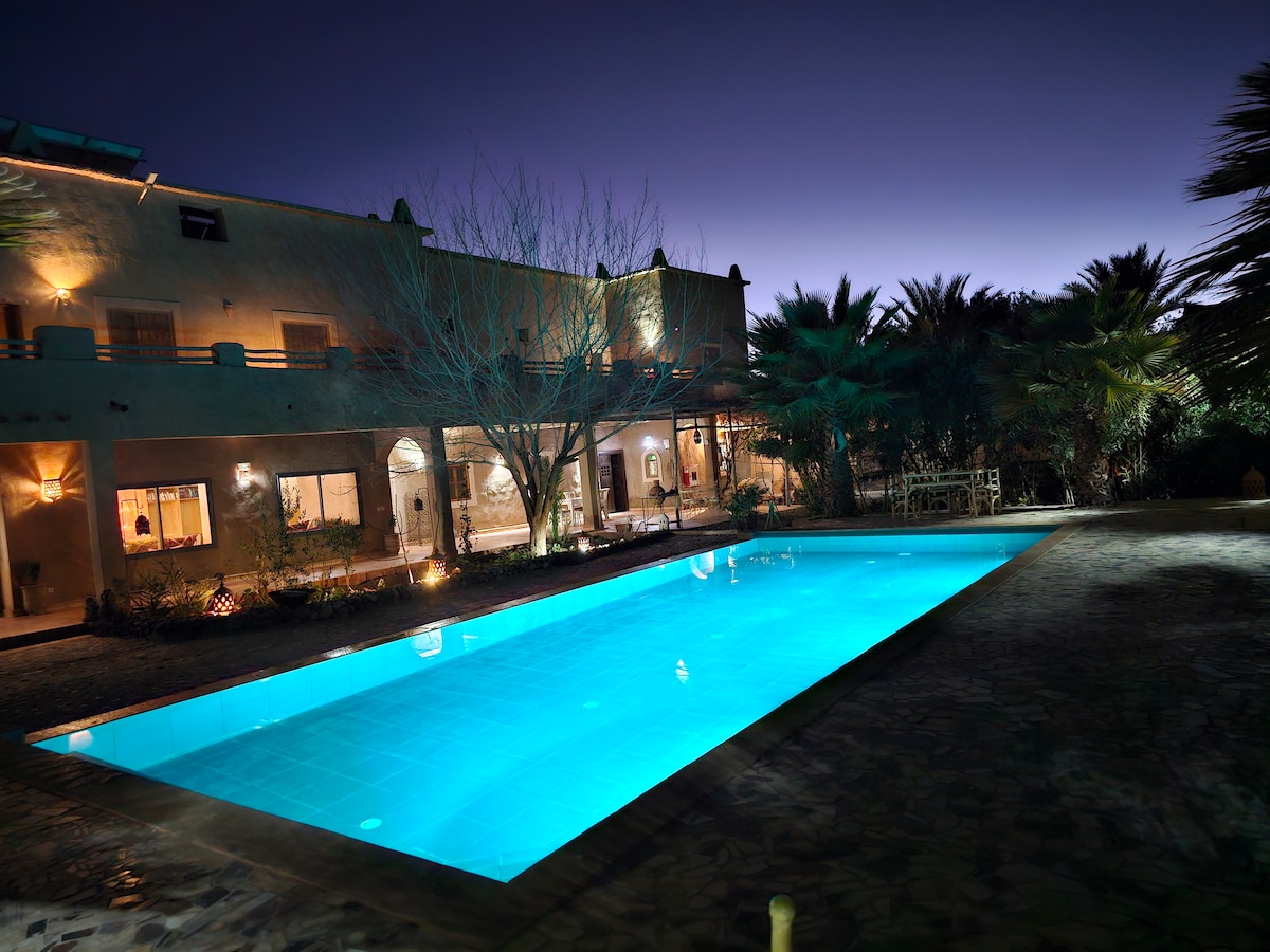 Witamy na naszym ranczu w samym sercu gaju palmowego Skoura! 🌿🏇 Nasze ranczo, położone w sercu zielonej oazy, oferuje wyjątkowe wrażenia łączące naturę, przygodę i relaks. Na miejscu są konie, Ranczo ma 3 wygodne sypialnie, które łączą w sobie autentyczny urok i nowoczesność. Wi-Fi jest wliczone w cenę, więc w razie potrzeby możesz pozostać w kontakcie. Jeśli chcesz naładować baterie w spokojnym otoczeniu, nasze ranczo obiecuje Ci niezapomniany pobyt.