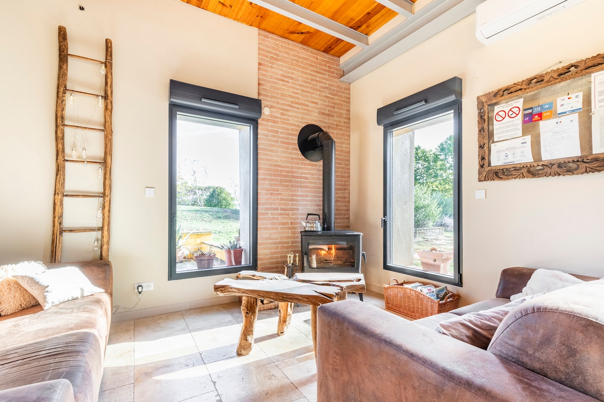 Dom dla maksymalnie 7 osób położony na wsi, w bezpośrednim kontakcie z naturą, 3 minuty od autostrady A68 Toulouse Albi. Wifi światłowodowe do pracy zdalnej lub relaksującego pobytu z rodziną lub przyjaciółmi, na wsi, w salonie z kuchnią wyposażonym w spokojny wystrój, weranda, spa, basen z podgrzewaną wodą, taras, ogrodzony ogród, grill, 3 sypialnie z 2 podwójnymi łóżkami i 2 pojedynczymi łóżkami, 1 rozkładana sofa, prysznic typu walk-in i 3 miejsca parkingowe. Znajdź nas w Cottages du Tarn. Do zobaczenia wkrótce! Cathy i Martial