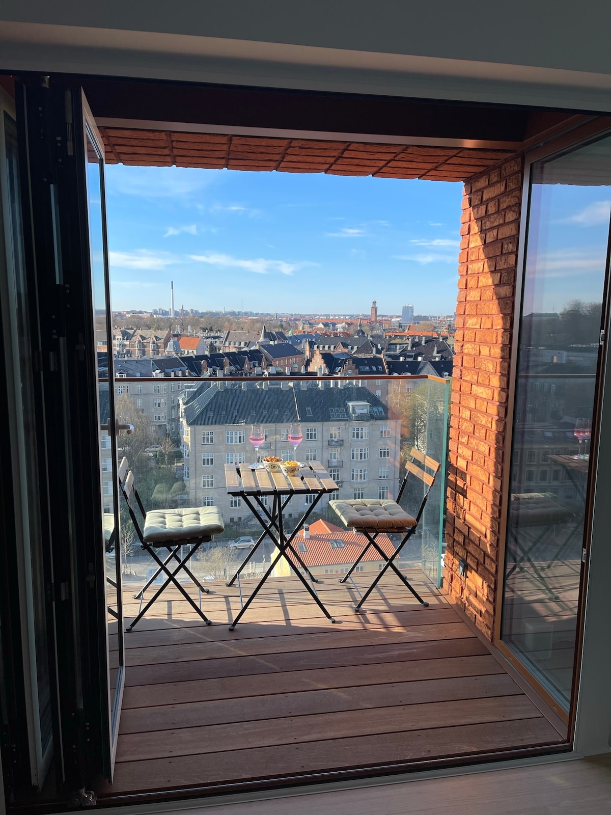 Wyjątkowy apartament w Carlsberg byen w Kopen. Stylowe dekoracje, z niesamowitym widokiem. Zobacz, jak miasto wychodzi na światło, gdy zaczyna się ciemność. Widok na miasto z salonów i sypialni. 2 windy Tylko przy dworcu kolejowym i 5 minut do Dworca Centralnego i Tivoli. Bezpłatne miejsce parkingowe w piwnicy. POCZUJ SIĘ JAK W LUKSUSOWYM APARTAMENCIE W CENIE STANDARDOWEJ HOTELROOM. Najwyższy standardowy telewizor i dźwięk. Szybki internet. Głośnik Sonos. Krzesełko dla dziecka/łóżeczko dziecięce
