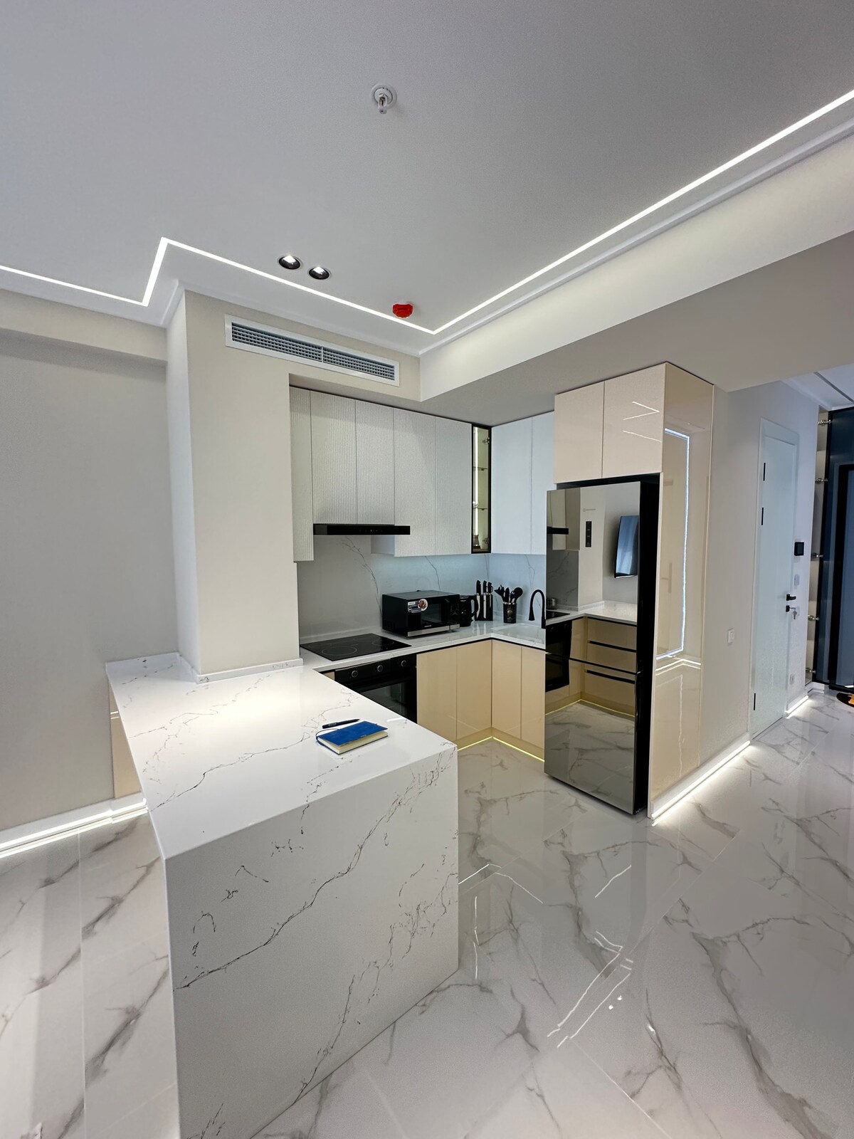 Уютные апартаменты расположены на 15 этаже современного жилого комплекса. Из окон и с балкона открывается красивый вид на город и район Tashkent City — особенно впечатляюще вечером, когда загораются огни столицы.