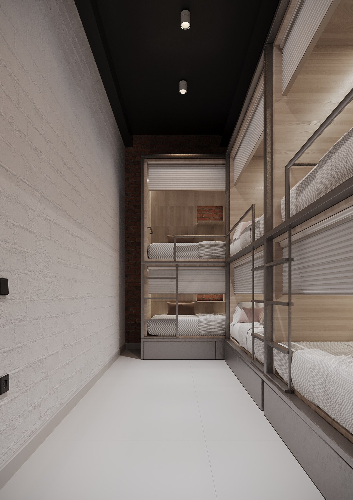Capsule sleeping place in a hostel for men
