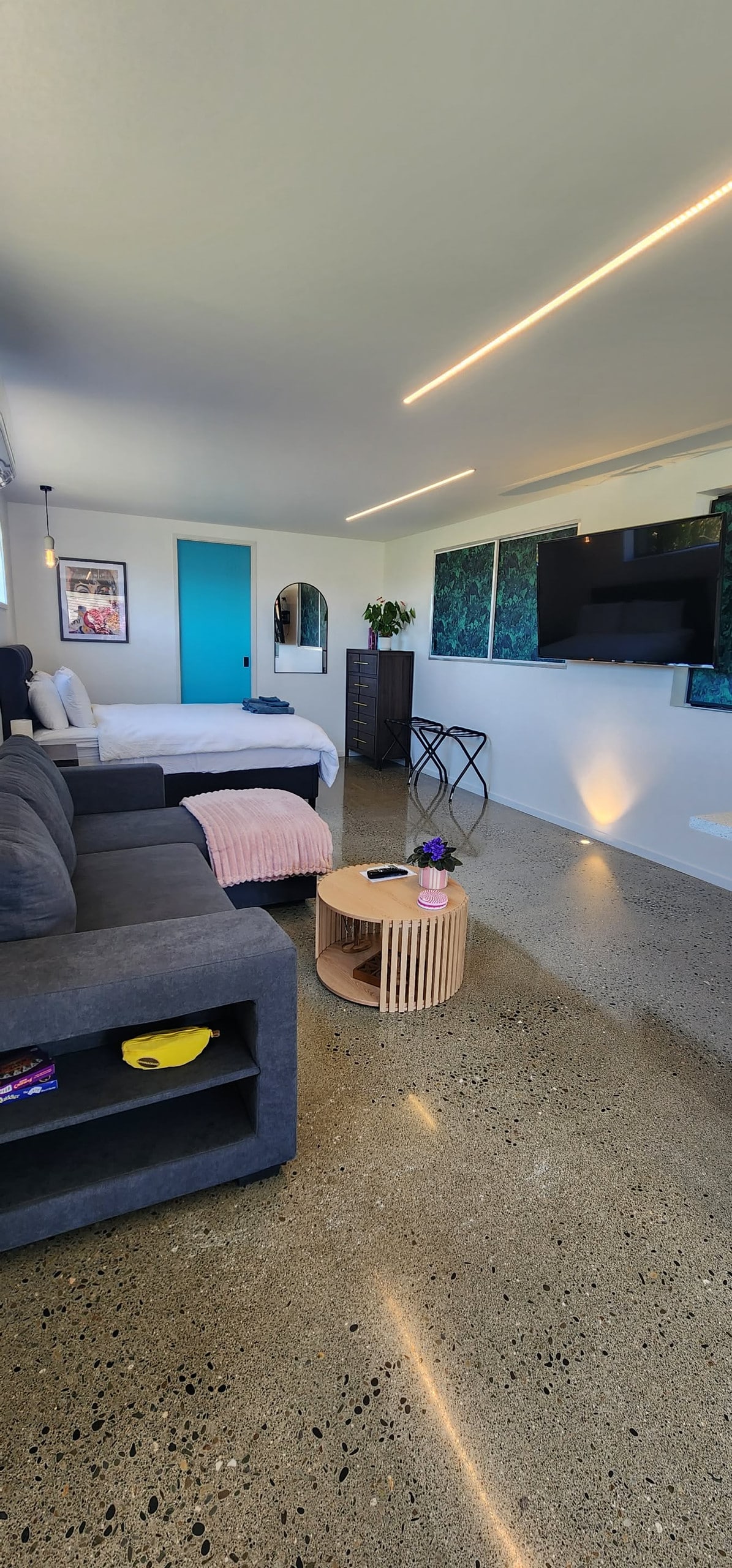 Położone pod główną rezydencją z prywatnym wejściem, to słoneczne, nowoczesne studio oferuje prosty i wygodny pobyt, idealny dla podróżnych szukających wygody. Wszystko, czego potrzebujesz, znajduje się w zasięgu ręki – w odległości krótkiego spaceru od lokalnej kawiarni, przystanku autobusowego i sklepu mleczarskiego. Niezależnie od tego, czy jesteś tu w interesach, czy dla przyjemności, będziesz cieszyć się bezproblemowym pobytem. Smart TV z Google Chrome Cast Aneks kuchenny zapewnia pełną lodówkę/zamrażarkę i kuchenkę mikrofalową/frytkownicę powietrzną oraz elektryczną patelnię do gotowania
