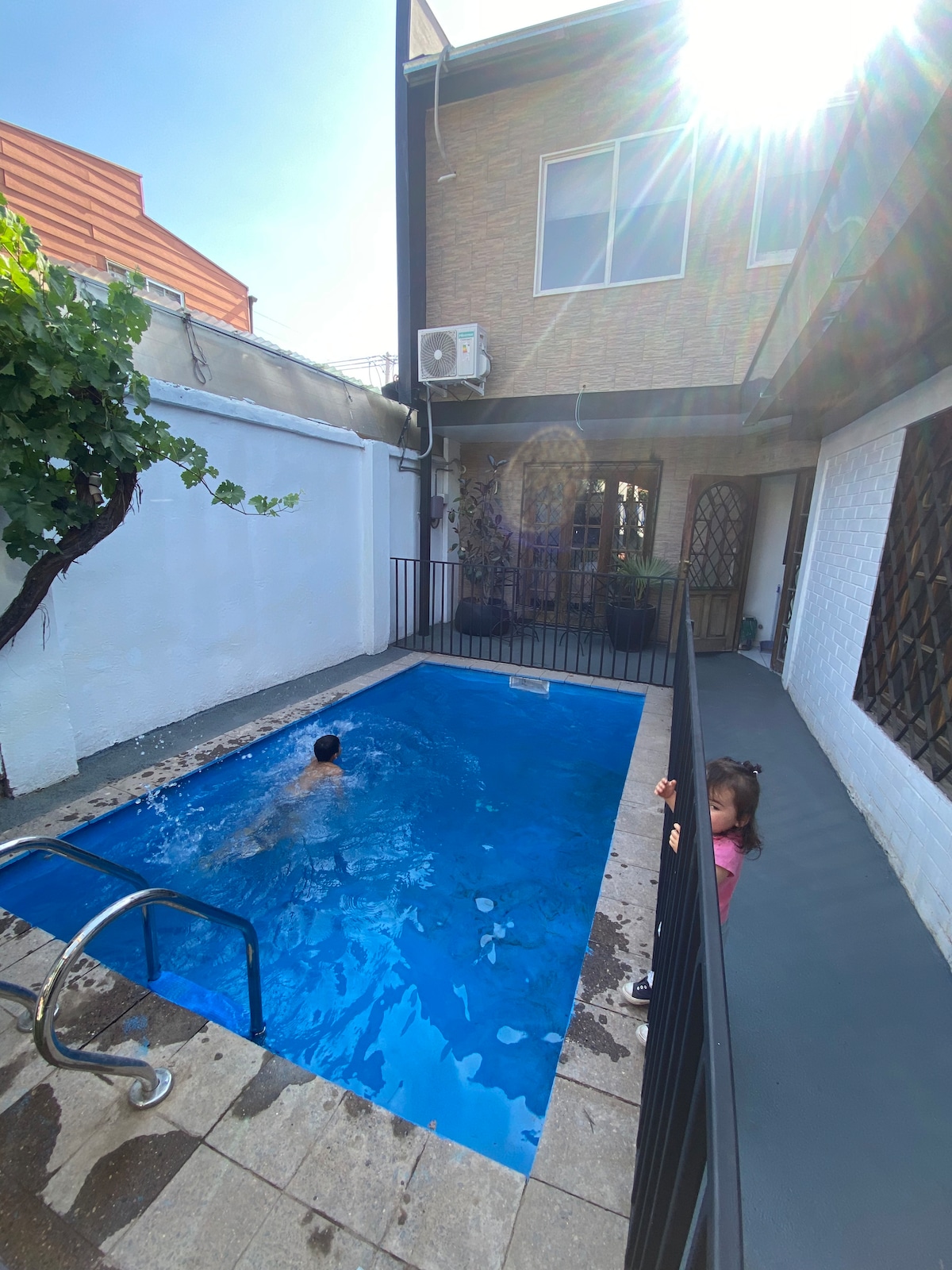 Casa recién remodelada (2025), en Providencia a pasos de la estación de metro Bilbao y con estacionamiento interior techado. Tiene aire acondicionado en cada habitacion, cocina full equipada, parrilla para asados, wifi, 2 smart TV, sistema Alexa conectado a luces, música y cortinas. En el jardin tienes limones, menta y romero. OPCIONAL: por un valor de $60.000 se puede acceder al servicio de piscina temperada / jacuzzi, con agua hasta a 40°. .