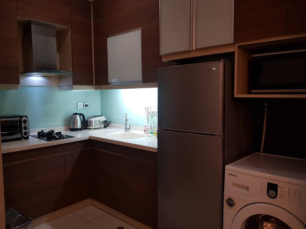A new and cozy decorated studio flat above shopping mall in the heart of East Jakarta. The location is close to Kuningan and Central Jakarta. The best place to stay with an affordable price! Enjoy our double bed size, smart TV (incl. Netflix) with fast wifi, hot water shower, well equipped kitchen and 24/7 security. Our studio close to Banks, restaurants, laundry, supermarkets and also cinema. You will also have an accsess to swimming pool, gym and basketball court.