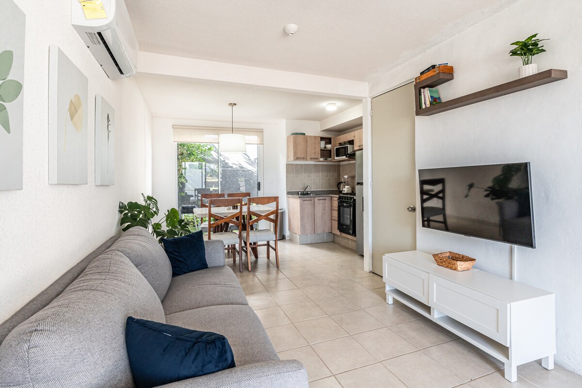 Witaj w Cuautla! To mieszkanie łączy w sobie komfort i funkcjonalność, idealne do pracy lub odpoczynku. Jest tu Wi-Fi, taras z grillem, prywatny parking i klimatyzacja. Jest to centralna i cicha okolica, 5 minut od centrum miasta i 15 minut od uzdrowisk. Jeśli podróżujesz z dodatkowym gościem (maks. 3 na rezerwację), możemy dodać go do pobytu za 200 USD. Dostępna jest wtedy rozkładana sofa, w tym pościel, koc i poduszka.