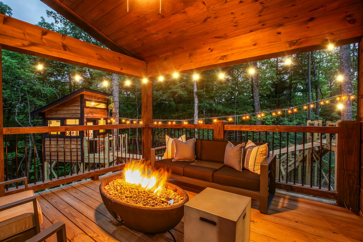 Dragonfly Treehouse: romantyczny wypoczynek w Dahlonega w stanie Georgia Zanurz się w spokojnym pięknie Dahlonegi w stanie Georgia i doświadcz magii The Dragonfly Treehouse – idealnego miejsca na romantyczny wypoczynek. Położony wśród drzew, wysoko nad prywatnym stawem. Ta luksusowa kryjówka oferuje wszystko, czego potrzebujesz, aby spędzić niezapomniany pobyt. Kino, wanna z hydromasażem, sauna, ekspres Nespresso, wanna do kąpieli, luksusowy prysznic, podgrzewane podłogi w łazience, podgrzewacz do ręczników, zielony kącik do gry w golfa, palenisko, kabina na świeżym powietrzu z telewizorem i pływającym łóżkiem.