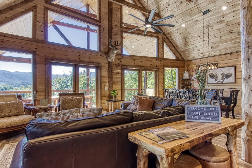 Welcome to our serene Smoky Mountains chalet, perfect for up to 12 guests and 2 dogs. - Breathtaking mountain views from double wrap-around decks - Private wrap-around decks with hot tub and mountain views - Game room with pool table and private movie theater - Seasonal indoor fireplace - Frequent visits from our neighboring bear family - 24/7 guest support for a seamless stay - Close to Great Smoky Mountains National Park and other attractions