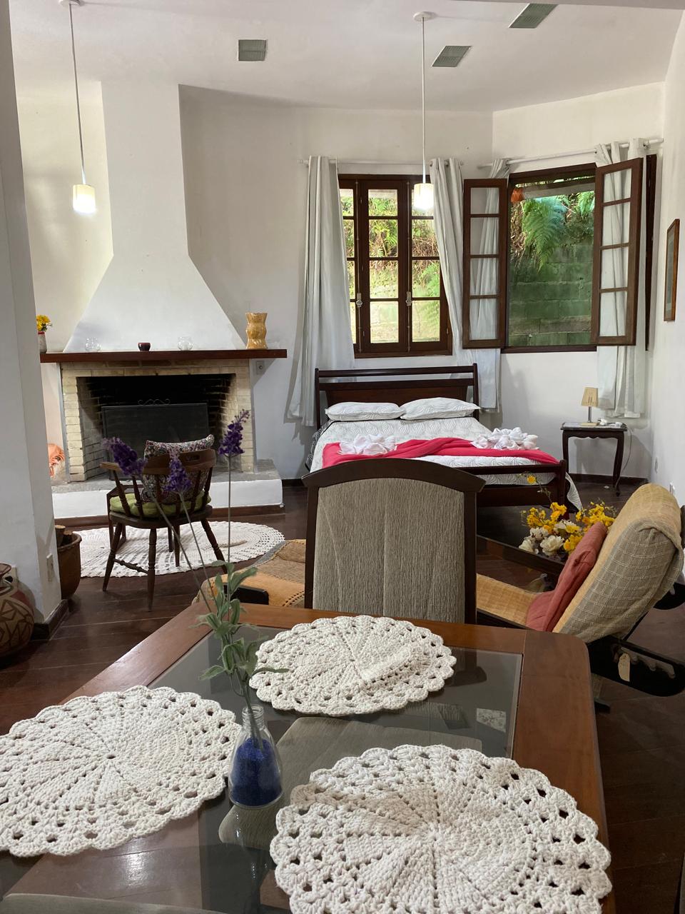 Conforto, charme e natureza se encontram neste refúgio encantador na serra. O espaço é amplo, acolhedor e decorado com muito carinho, perfeito para relaxar em meio ao silêncio e ao verde. A lareira deixa os dias frios ainda mais especiais, criando um clima aconchegante. Do quarto, a vista deslumbrante para as montanhas, com o majestoso Dedo de Deus em destaque, transforma cada amanhecer em um espetáculo único, embalado pelo canto dos passarinhos. Localização é muito especial: perto do centro.