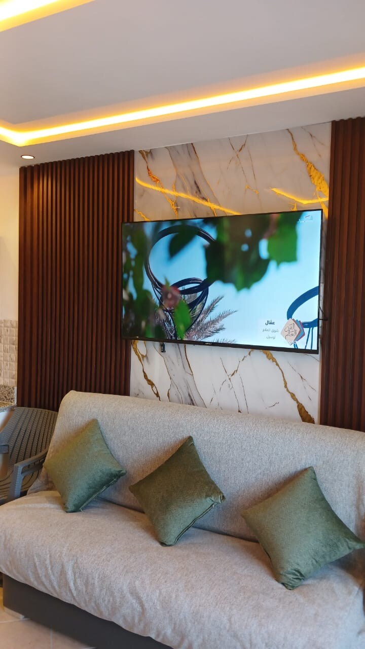 Stylowy i przestronny apartament F5 w rezydencji z windą i konsjerżem. W pełni umeblowane, dobrze wyposażone, idealne dla rodzin lub grup. 2 sypialnie, 2 łazienki, duże pokoje dzienne, wspaniałe widoki na góry. Szybkie Wi-Fi światłowodowe. Bezpłatny zadaszony prywatny parking + publiczny parking na ulicy. Cicha, bezpieczna okolica w pobliżu centrum miasta, lotniska Saniat Rmel, Martil, Mdiq, Cabo Negro i plaż.