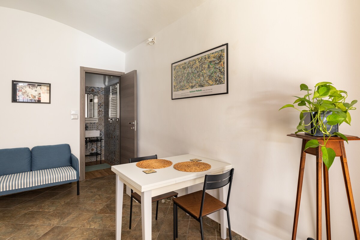 Uroczy apartament typu studio położony na wzgórzu w Turynie, zaledwie 15 minut jazdy samochodem od centrum Turynu i trzy minuty spacerem od centrum miasta i przystanku autobusowego. Położony na parterze, ma całkowicie niezależny dostęp i zewnętrzne patio do dyspozycji gości. Łazienka wyposażona jest w pralkę i jest przeznaczona do wyłącznego użytku apartamentu. W aneksie kuchennym znajduje się naczynia, kuchenka, kuchenka mikrofalowa i ekspres do kawy.