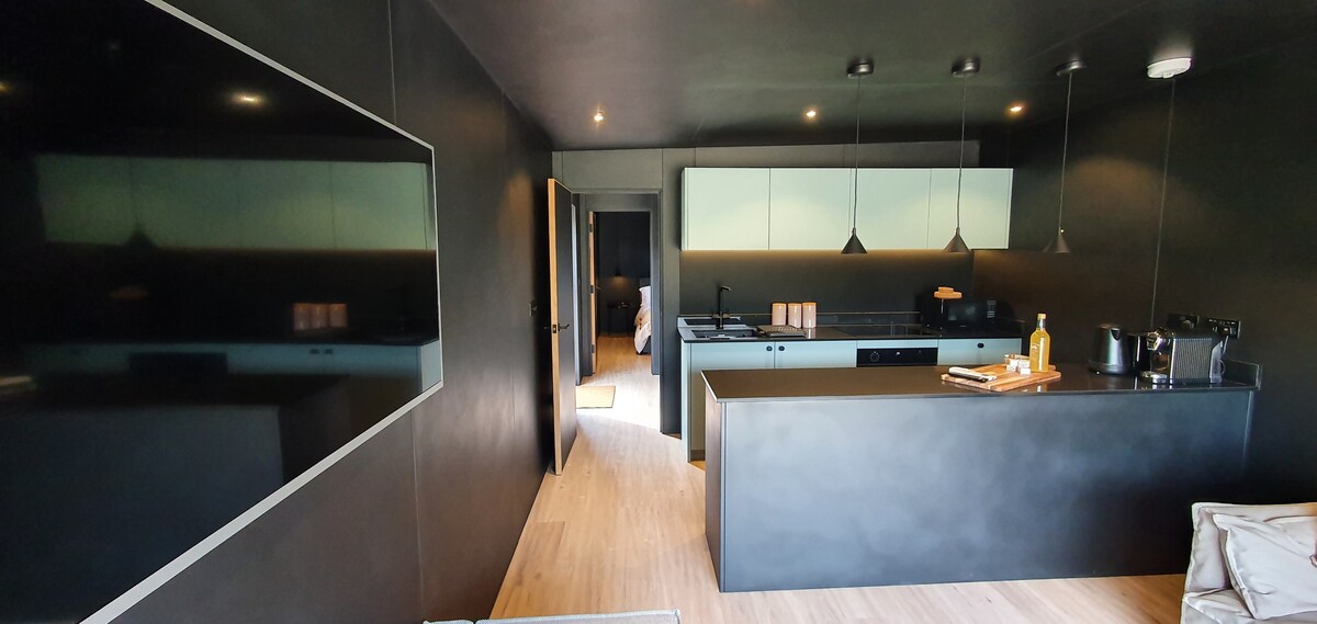 The Hut - a new luxury pod - king bed and bathroom