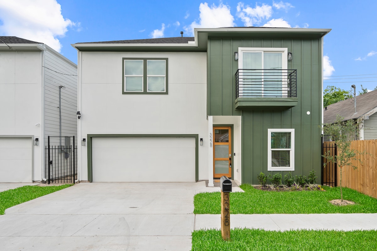Welcome to The Hideaway. This spacious home is perfectly located minutes from Minute Maid Park, Toyota Center, Texas Medical Center, Houston Zoo, Museum of Fine Arts, George R Brown Center and Reliant Stadium. Relax and enjoy a brand-new modern 3 story build. Perfect for hosting your family and friends. Indulge in some of Houston's finest hometown cuisines such as The Breakfast Klub, Brennan's of Houston, Turkey Leg Hut and Pappadeaux Seafood. The house is equipped with 24/7 surveillance.