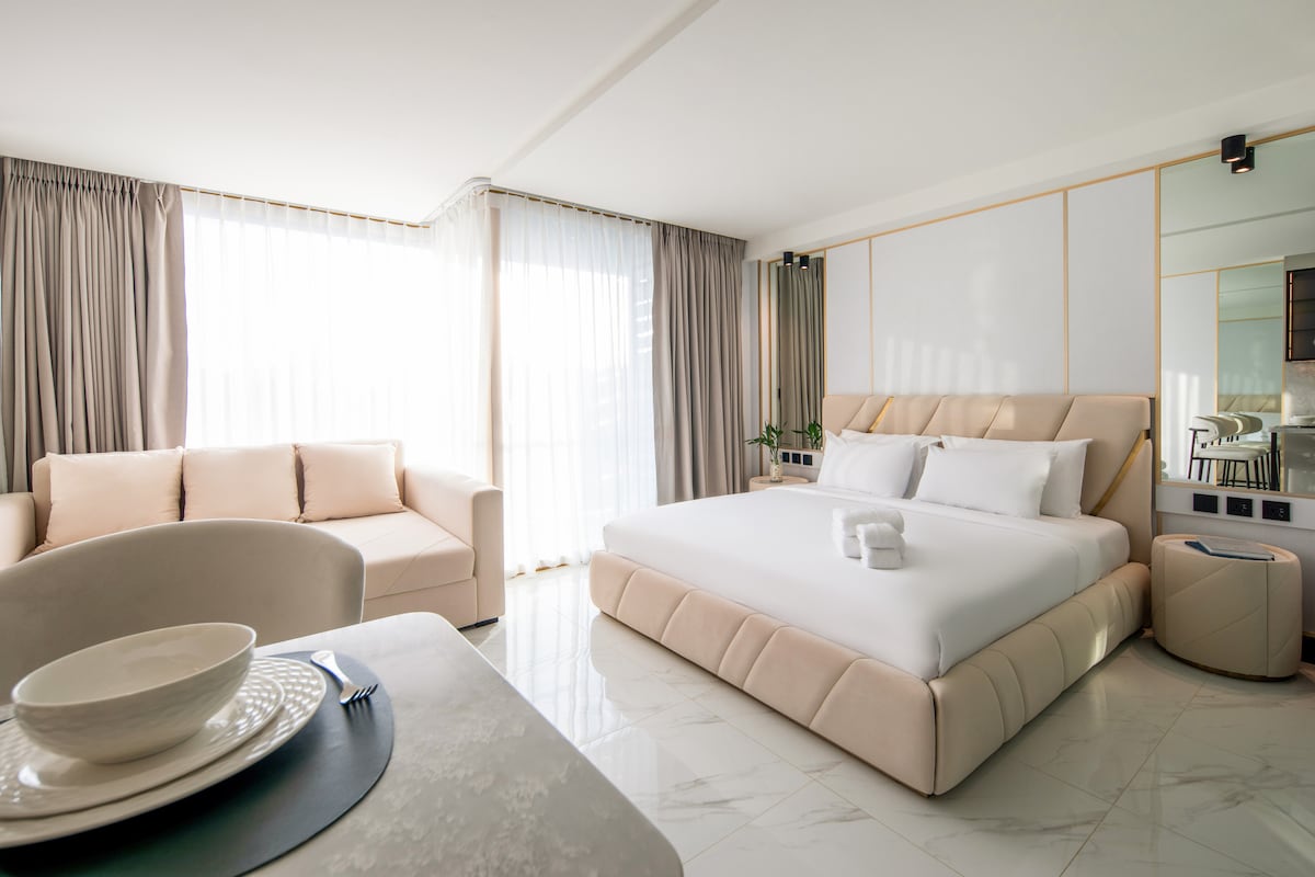 Stylowe studio o powierzchni 33 m² w nowym kompleksie premium Andaman Riviera, położonym zaledwie 500 metrów od plaży Bang Tao. Jasne i przestronne mieszkanie z panoramicznymi oknami, designerskimi meblami i w pełni wyposażoną kuchnią, które zapewnia ciepłą i komfortową atmosferę. Basen na dachu z panoramicznym widokiem to idealne miejsce na relaks i podziwianie zachwycających zachodów słońca. Studio idealnie nadaje się zarówno na krótkie, jak i dłuższe pobyty, łącząc w sobie nowoczesny styl, wygodę i prawdziwą obsługę na poziomie hotelowym.