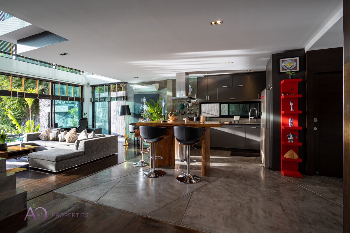 OSZAŁAMIAJĄCY NOWOCZESNY WIDOK NA MORZE 4BEDROOM, ZACHÓD SŁOŃCA, BASEN WILLA W KAMALA ZNAKOMITE WIDOKI NA ZACHÓD SŁOŃCA NA ANDAMAN SEA.FULY ODNOWIONY Z ULEPSZONYMI akcentami w LIPCU 2022 roku Położony na szczycie góry otoczony kamieniem i dżunglą. Nowoczesna, ale akceptacja natury, bezproblemowa przestrzeń mieszkalna wewnątrz/na zewnątrz! Przyjechałeś do Tajlandii, żeby to zbadać, ale nie chcesz wyjeżdżać. Nie śnij o swoim życiu, spełnij swoje marzenie. Witaj w swoim domu z dala od domu.