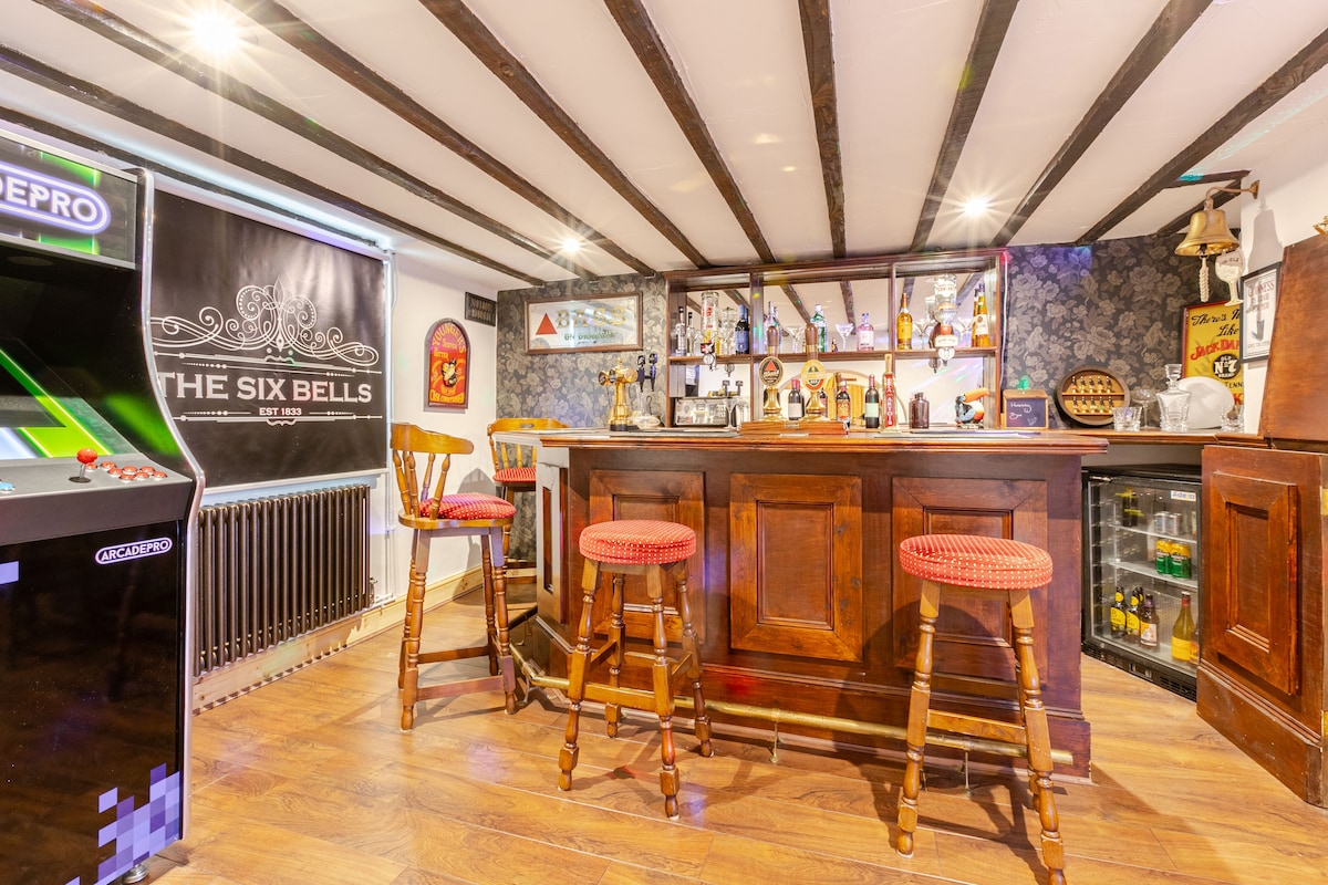 Escape to The Six Bells, a restored Georgian pub turned luxury countryside retreat. With over 4,000 sq ft of vibrant living space, it features a wellness cabin (sauna, hot tub, gym), private cinema, authentic bar, and stunning gardens. Perfect for families, celebrations, or soulful getaways, all just minutes from Canterbury and Whitstable. Pet-friendly, stylish, and steeped in charm.