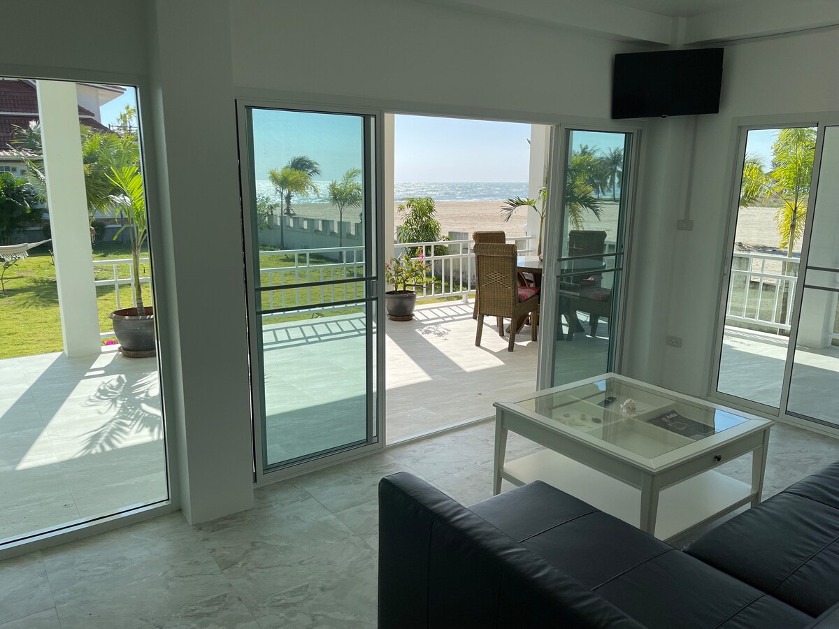 Villa Aruna 2 is one of 10 luxurious beachfront villas in the small town of Huay Yang, 300 km south of Bangkok and far from the stress of it. There's 3 bedrooms on the 2nd floor (all equipped with on-suite bathrooms and AC). 10 beds in total on 2nd floor (4+4+2). On the first floor there's a double bed with a bathroom across the hall. Fully equipped kitchen with all utensils. A huge sun terrace with a marvellous view over the ocean / the mountains. Free WIFI is included for all guests!