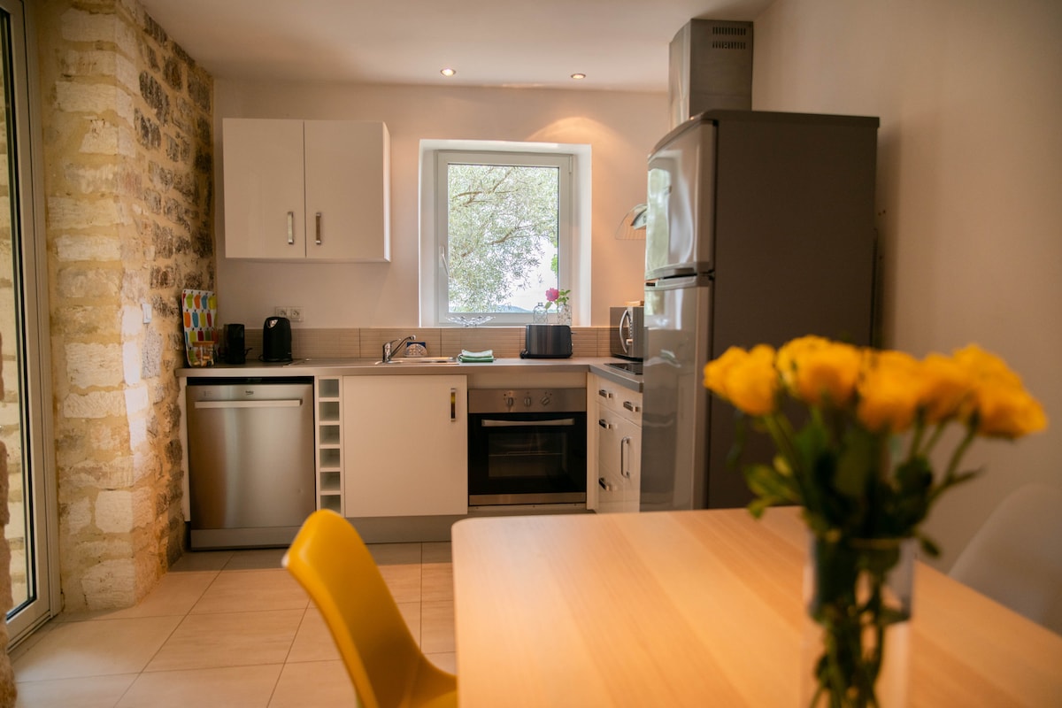 Szukasz romantycznego miejsca na pobyt ? Wyjątkowe miejsce ? Witamy w XVIII-wiecznym Mas całkowicie odnowionym, aby zaoferować Ci pobyt blisko natury. Nasze mieszkanie, stworzone w chłodnym kamiennym skrytce, sprawi, że Twój pobyt będzie niezapomniany. Z zacienionego tarasu roztacza się widok na plantacje drzew oliwnych i trufli. Przywitają Cię również Lulu i Griotte, nasze psy, które towarzyszą Nadine podczas żniwa trufli.