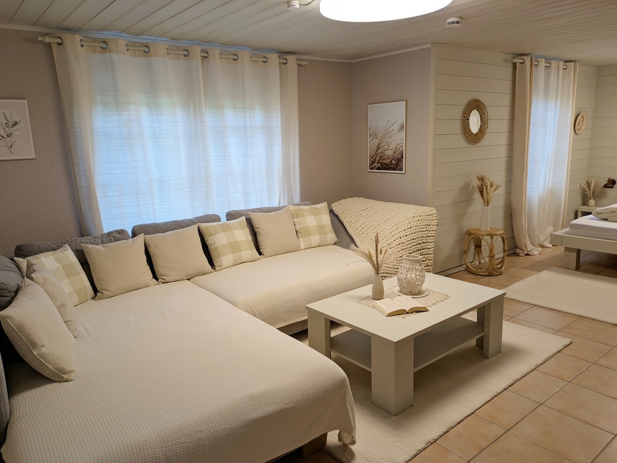 Pięknie umeblowany apartament w Gailingen am Hochrhein Mieszkanie znajduje się w piwnicy domu jednorodzinnego. Zakupy w odległości 5 minut pieszo. The Rhine is a 10-15 minute walk Parking bezpośrednio przy apartamencie Połączenie autobusowe w odległości około 150 m Mieszkanie znajduje się w nowej zabudowie. Nasz dom jest gotowy. Ale od czasu do czasu może być hałas z budowy. (Domy w zabudowie bliźniaczej)