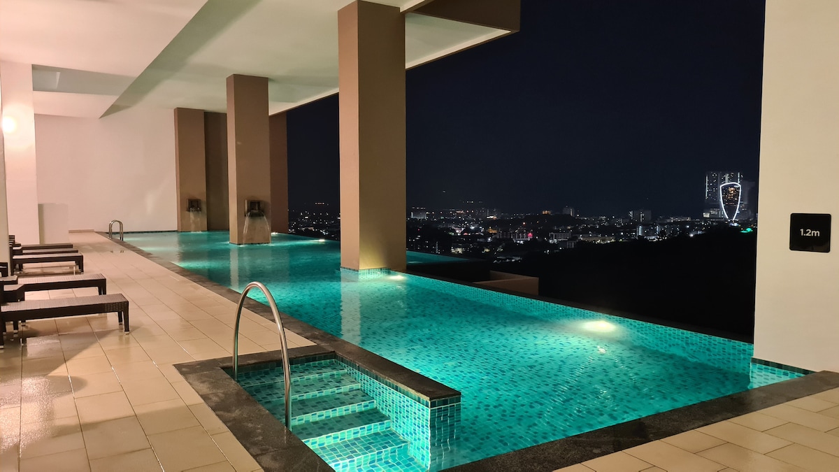 Our apartment is located at The Shore, Melaka, featuring a modern design and a comfortable living space. It offers high-quality bedding, essential amenities, and stunning city or river views. Guests can also enjoy the facilities within the building, including an infinity pool, a gym, and a shopping mall, making it ideal for family vacations or trips with friends.