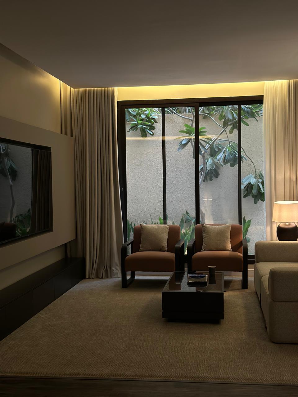 Nowoczesny apartament zaprojektowany z myślą o wyjątkowym pobycie, położony w jednej z najwspanialszych dzielnic Rijadu z pięknym widokiem na KAFD. Znajduje się w nim część wypoczynkowa na zewnątrz z parawanem i projektorem na przyjemne wieczory. Dla Twojej wygody, łóżko jest wyposażone w wysokiej jakości dodatkową warstwę o długości 14 cm. „Oferujemy również usługi koordynacji wydarzeń na specjalne okazje (w tym ciasto i akcesoria) za dodatkową opłatą z wcześniejszą rezerwacją, zapewniając niezapomniane wrażenia ”