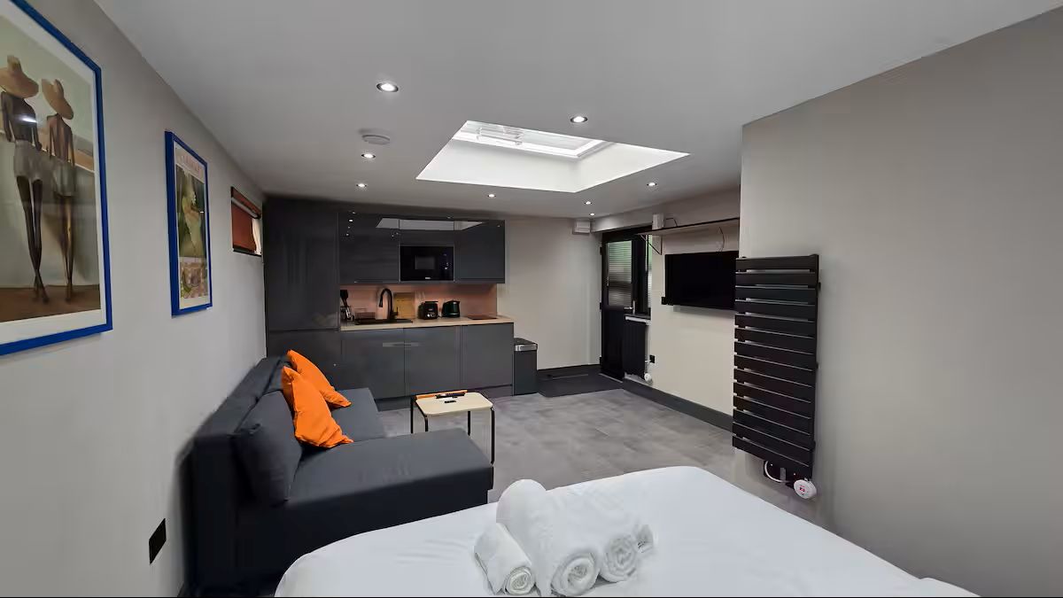 Piękne, samodzielne studio ogrodowe, położone w samym sercu zabytkowej wioski Highgate. Studio o powierzchni 320 stóp kwadratowych jest wyposażone w łóżko typu king size, aneks kuchenny, łazienkę z przestronnym prysznicem, telewizor HD 55”, BBC iPlayer, Amazon i Netflix. Na zewnątrz znajduje się częściowo prywatny taras z miejscami do siedzenia. W wiosce znajduje się dziesięć pubów/restauracji w odległości kilku minut spacerem, a także piękny rozległy cmentarz Hampstead Heath i Highgate. Z doskonałym połączeniem autobusowym i metrem w pobliżu.