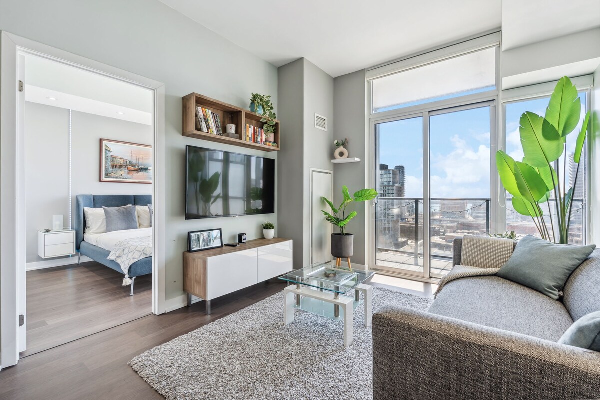 Witaj w swojej nowoczesnej oazie w centrum miasta! Ten nieskazitelny apartament z 1 sypialnią, prywatnym balkonem i w pełni wyposażoną kuchnią, jest idealny na pobyt w mieście. Położone 8 minut spacerem od Eaton's Centre, Subway, naprzeciwko TMU, kilka kroków do St. Lawrence Market, Lake Ontario, Toronto Harbourfront and Business/Entertainment Districts. Wczesne zameldowanie o10:00! Późne wymeldowanie o 15:00! Ciesz się pobliskimi restauracjami, Distillery District, Rom i Yorkville. Idealne do odkrywania wszystkiego, co Toronto ma do zaoferowania!