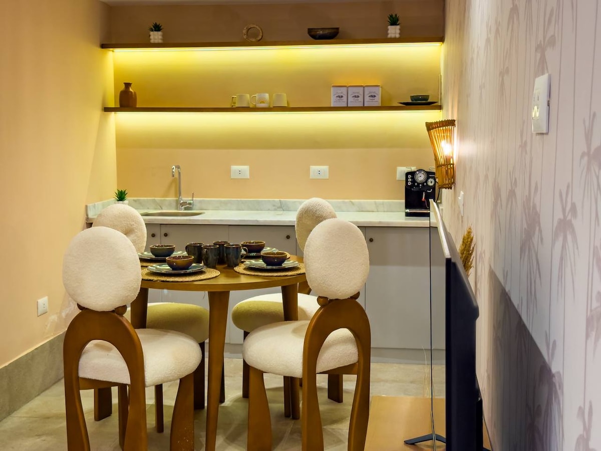 Odkryj uroczy apartament w stylu boho w Gizie, zaprojektowany w spokojnych, neutralnych kolorach z naturalnymi akcentami. Jest idealne dla trzech osób i posiada wygodne podwójne łóżko, rozkładaną sofę, jadalnię oraz aneks kuchenny do lekkiego gotowania. Zrelaksuj się w prywatnym jacuzzi lub zrób kilka ćwiczeń na dostępnym sprzęcie. To spokojne miejsce w pobliżu słynnych piramid oferuje idealne połączenie komfortu i kultury, dzięki czemu jest idealną bazą wypadową do odkrywania Egiptu.