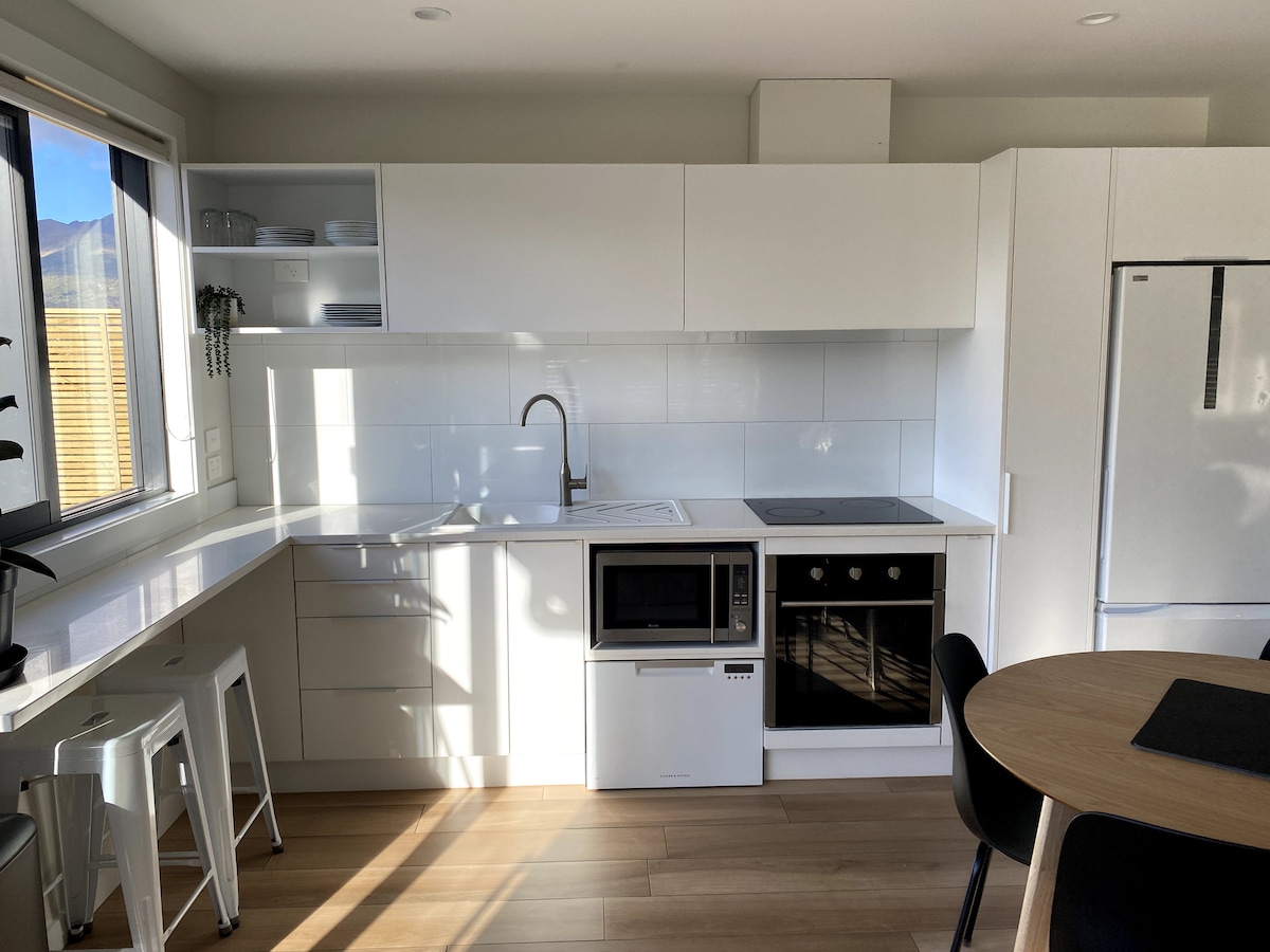 Welcome to Mt Grandview Guesthouse, nestled in the serene Hāwea Flat. This modern new build features a fully equipped kitchen, laundry, comfortable king bed, and plenty of storage — everything you need for a relaxing stay. Unwind and take in breathtaking sunsets over the Treble Cone and Black Peak ranges, or marvel at the incredible night sky right from your doorstep. Only a short drive to Lake Hāwea and just 15 minutes from Wānaka township. Enjoy our peaceful country way of living.