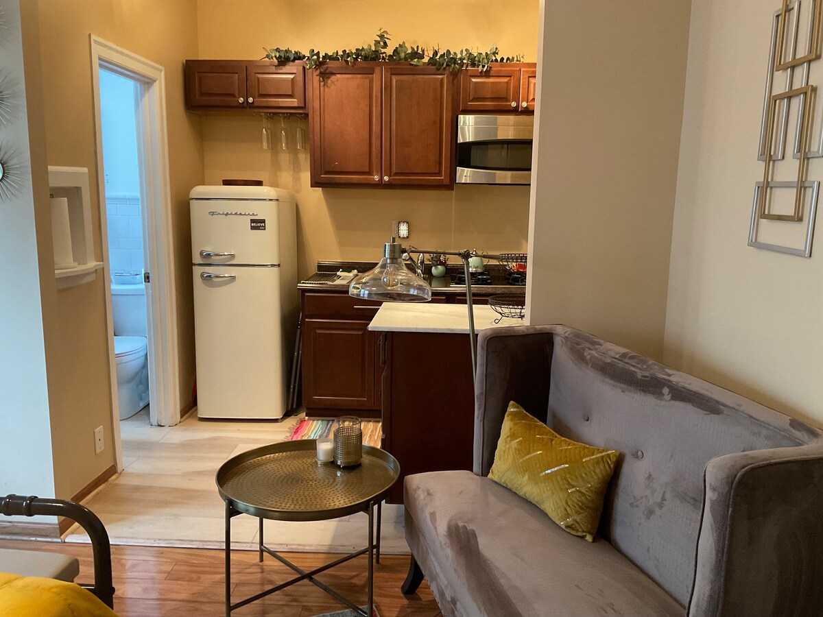 Ciesz się tym zabawnym i wyjątkowym miejscem z 1 sypialnią i 1,5 łazienką w samym sercu dzielnicy Bronzeville w Chicago. Ten artystyczny klimat oferuje eklektyczny wystrój, ręcznie malowane murale, telewizory Smart TV, bar z umywalką, studio odnowy biologicznej, zdalne miejsce do pracy, bezpłatny parking na ulicy i bezstopniowy dostęp do parteru. Ta przytulna przestrzeń jest idealna dla par, samotnych poszukiwaczy przygód, osób podróżujących służbowo i miłośników gier nocnych. Łatwy dostęp do centrum miasta (6 mil do Mag Mile, Navy Pier, Millennium Park), plaży (1 mila), muzeów i aren sportowych.