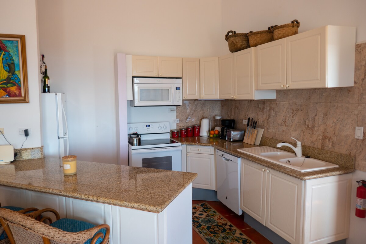 Zamieszkaj w tym świeżo odnowionym, położonym nad oceanem apartamencie z jedną sypialnią, który łączy nowoczesny komfort z oszałamiającym widokiem na morze. Otwarta przestrzeń mieszkalna z dużymi oknami i prywatnym balkonem idealnie nadaje się do korzystania z oceanicznej bryzy. Elegancka kuchnia, przytulna sypialnia z łóżkiem typu king-size i stylowa łazienka zapewniają wszystko, czego potrzebujesz, aby odpocząć. Ten elegancki nadmorski dom wakacyjny położony kilka kroków od oceanu jest idealnym miejscem na spokojny wypoczynek.