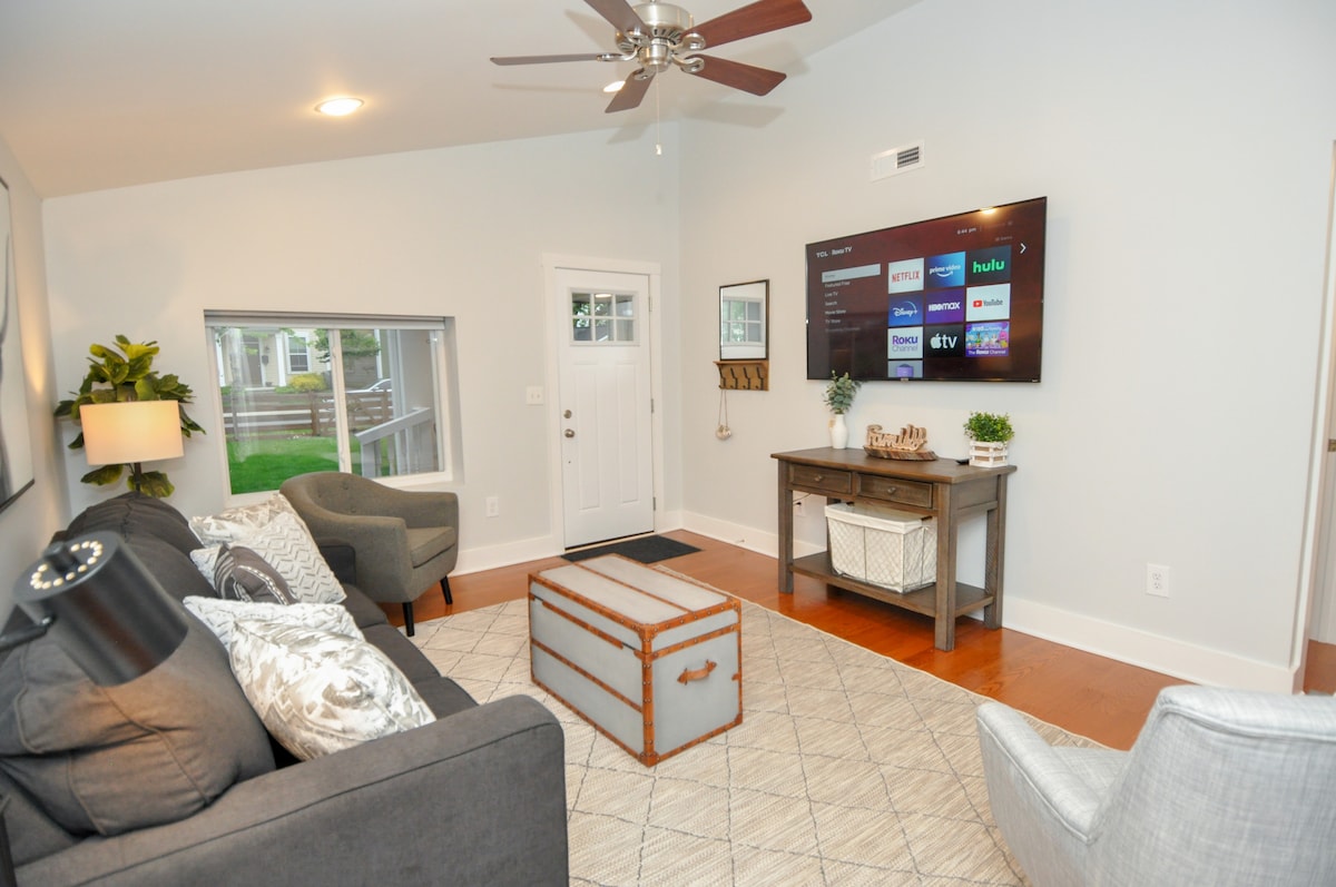 Fantastyczne miejsce na pobyt i odkrywanie tego, co Columbus ma do zaoferowania! Jedna przecznica od High Street, położona na skraju North Campus i Old North Columbus. Mnóstwo restauracji i barów w okolicy, z 2 kuponami rabatowymi o wartości 10 USD! Tylko 10 minut jazdy do tętniącego życiem Short North i Downtown. 20 minut spacerem do zabytkowego stadionu Ohio! Salon i sypialnie wyposażone są w telewizory Smart TV. Bezkluczykowe wejście z inteligentnym zamkiem. Nowe materace z pianki memory foam i rozkładane sofy do zasłużonego odpoczynku.