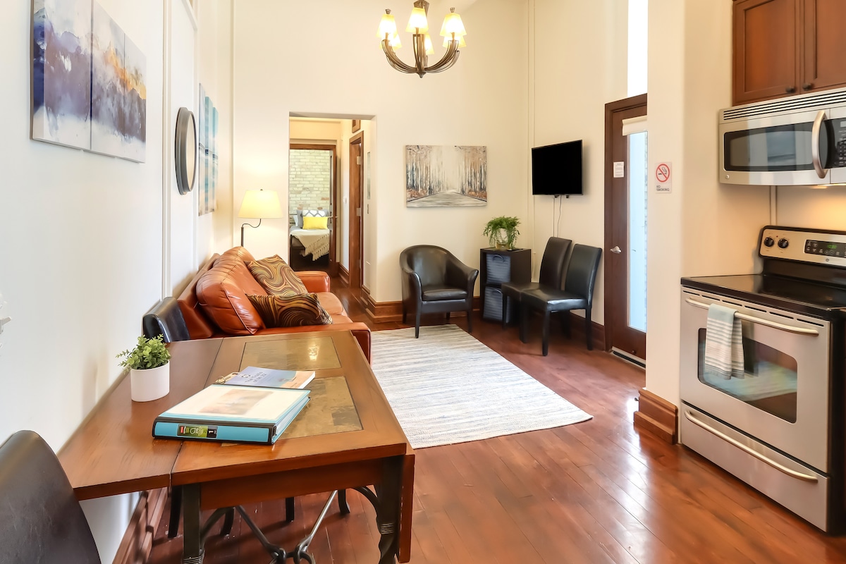 Zatrzymaj się w kawałku historii w centrum Traverse City! Firehouse One była pierwszą jednostką straży pożarnej działającą w mieście. To mieszkanie na parterze w Firehouse One ma jedną sypialnię i jedną łazienkę. Może pomieścić maksymalnie 4 gości z bezpłatnym parkingiem na miejscu i internetem światłowodowym. To mieszkanie w Firehouse One łączy oryginalną architekturę budynku z dużymi oknami, wysokimi sufitami i odkrytą cegłą z nowoczesnymi meblami i wykończeniami, które tworzą wspaniałą atmosferę.