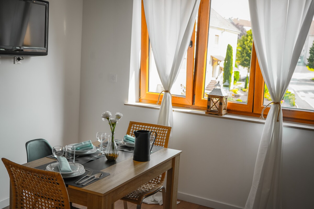 Zachwyć się naszym uroczym, całkowicie odnowionym apartamentem. Znajduje się na drugim piętrze bez windy w małym kondominium przy cichej ulicy i w pobliżu wszystkich udogodnień. Zapraszamy na spokojny sen na wysokiej jakości pościeli 👌 Wyposażone w łóżeczko i wysokie krzesełko dla wygody Twojego dziecka! Dobrze położony 2 minuty od autostrady, 10 minut od Saarbrücken i 40 minut od Metz