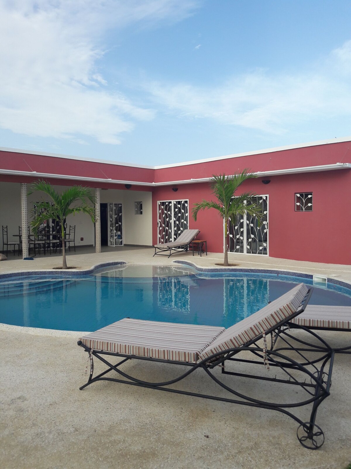 Détendez-vous dans ce logement calme et élégant, Piscine privée, eau chaude, Climatisation Au centre de Thies , à 20 mn de l’aéroport du Sénégal. Salon, cuisine équipée et dînatoire, deux chambres avec grand lits, Bien sécurisé, avec terrasse. Style européen avec le charme sénégalais, Pas loin du Auchan, taxi facile ou voiture Personnelle. Mbour3: quartier calme idéal pour se déplacer dans Thies Les locataires souvent contents de mes logements. Personne sur place pour renseignement et repas