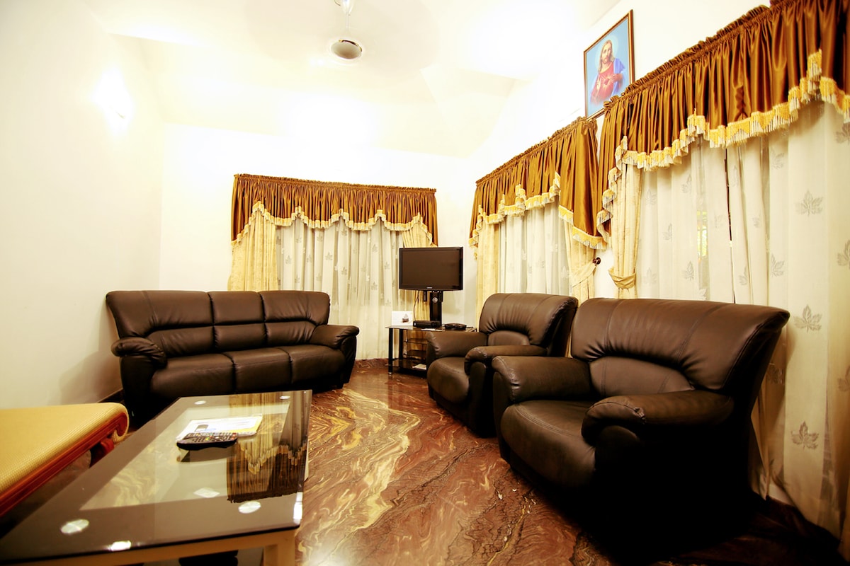 Meprath Joy Homes nadaje się na wakacje, osoby podróżujące służbowo i rodziny z dziećmi. Nasz dom znajduje się wśród plantacji i zieleni. Nasze miejsce jest odpowiednie na przyjemny wypad z miasta. Miasto Thiruvalla znajduje się zaledwie 7 km od naszego miejsca. To zdecydowanie warte swojej ceny. Przyjdź i ciesz się prawdziwym spokojem i naturą. Mob 9446913687 8139891835