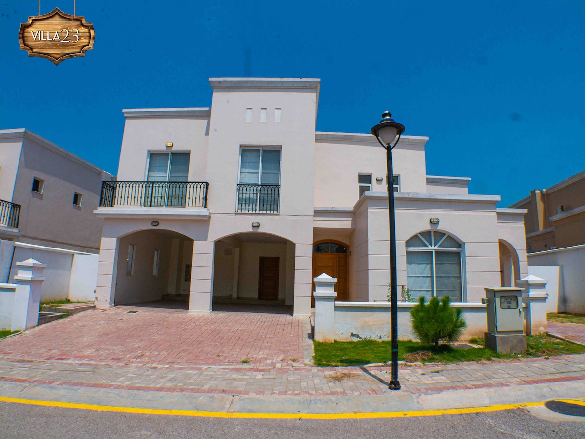 Zrelaksuj się i rozkoszuj luksusowym miejscem oferowanym przez ComfyCozy. Ta nowoczesna willa znajduje się w bujnej zielonej enklawie Bahria Islamabad . Większość rozrywek znajduje się w Bahria Enclave (ptaszarnia/zoo), a tylko 10 minut jazdy dzieli Cię od tańczących fontann w Park View Society, tętniącej życiem Food Valley i jeziora Rawal, które dodadzą jeszcze więcej emocji Twojemu pobytowi. Zakupy spożywcze są dostarczane pod same drzwi, co zwiększa wygodę. Możesz również uzyskać dostęp do SIŁOWNI w specjalnych obniżonych cenach