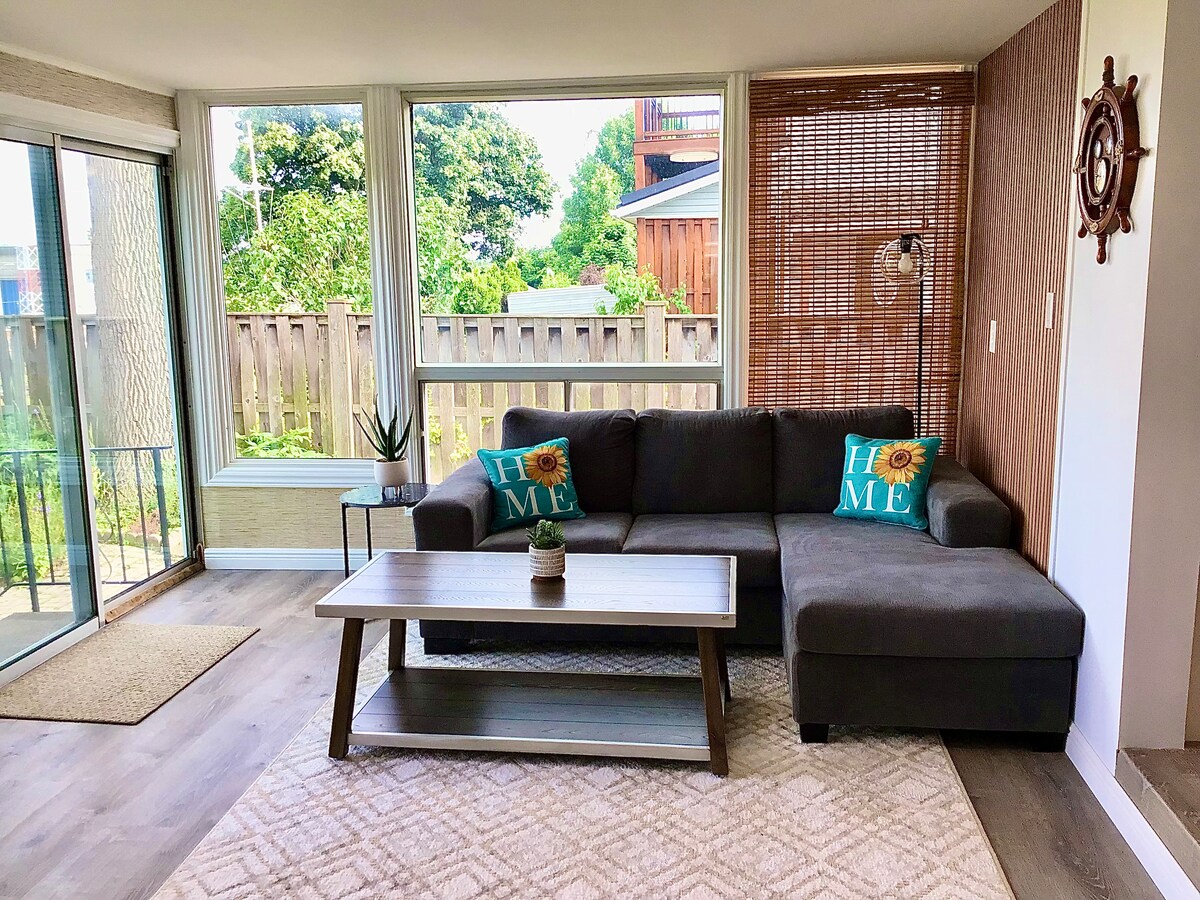 Wygodne miejsca na zimowy wypoczynek❄️ Schowaj się w tym ciepłym i przyjaznym zimowym schronieniu, gdzie płatki śniegu opadają za oknami, a świat na zewnątrz wydaje się spokojny i cichy. Spędzaj mroźne poranki na ogrzewanej werandzie z gorącą kawą, przytulne popołudnia zwinięte w kłębek z dobrą książką i spokojne wieczory, oglądając padający śnieg. Idealne na weekendowe wypady, wakacje połączone z pracą lub spokojny wypoczynek przed świętami. Kilka kroków od ścieżki kanału Welland!