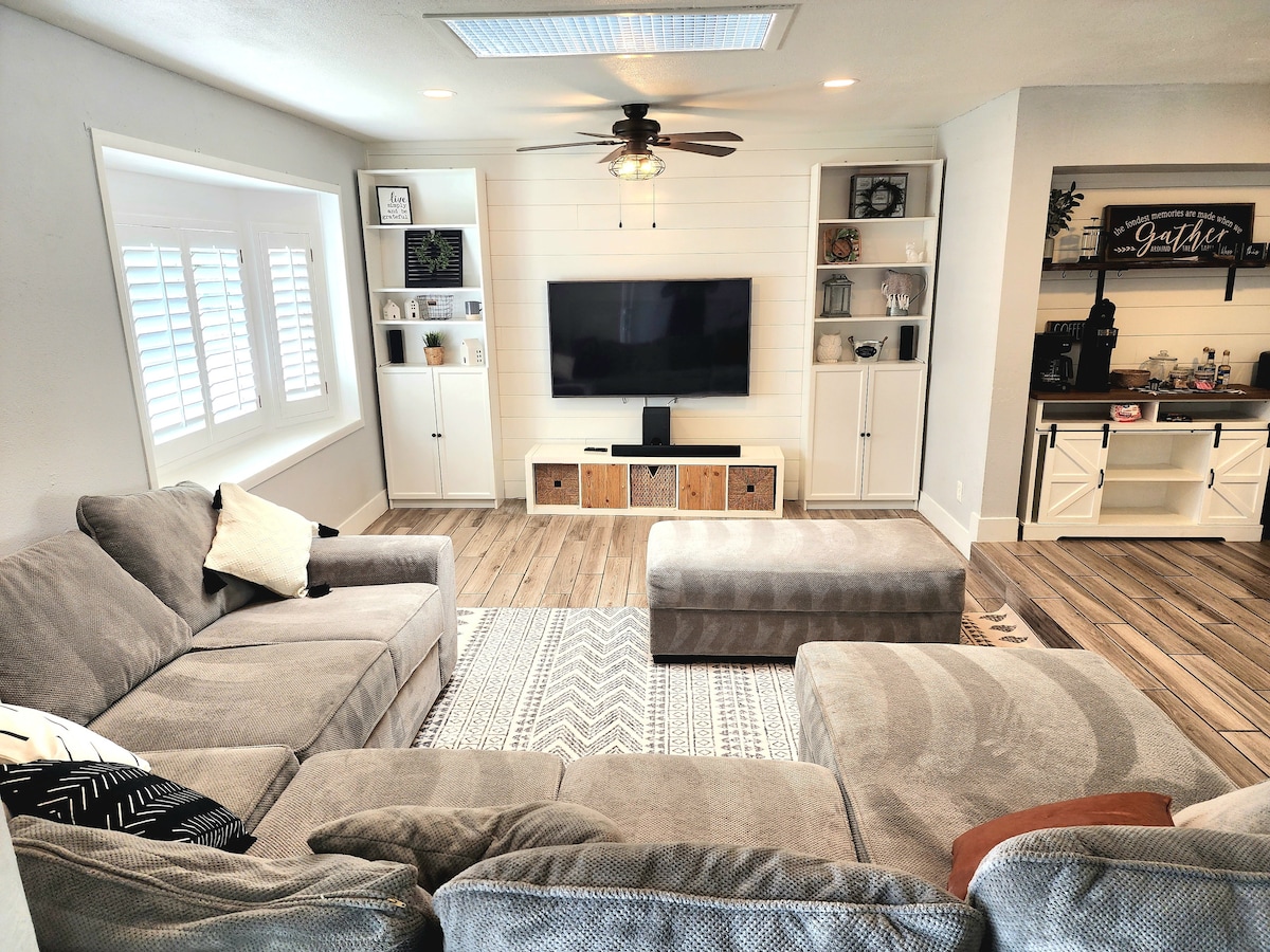 Zrelaksuj się w odnowionej piwnicy. Ta dobrze oświetlona, nowoczesna przestrzeń mieszkalna jest wyposażona we wszystkie udogodnienia, aby cieszyć się kilkoma nocami lub kilkoma miesiącami. Znajduje się 15 minut od State Farm Football Stadium (AZ Cardinals), w odległości spaceru od Peoria Sports Complex-Spring Training i w pobliżu centrum handlowego Arrowhead, wielu restauracji, dzielnicy rozrywkowej Peoria P83 i w sąsiedztwie systemu szlaków pieszych/rowerowych hrabstwa Maricopa.